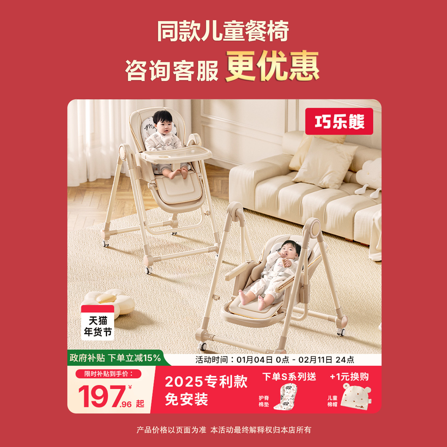 巧乐熊宝宝折叠餐椅儿童家用成长椅婴儿吃饭多功能高脚学习座椅子