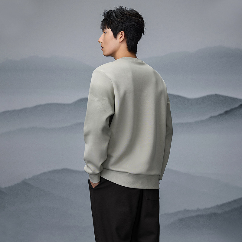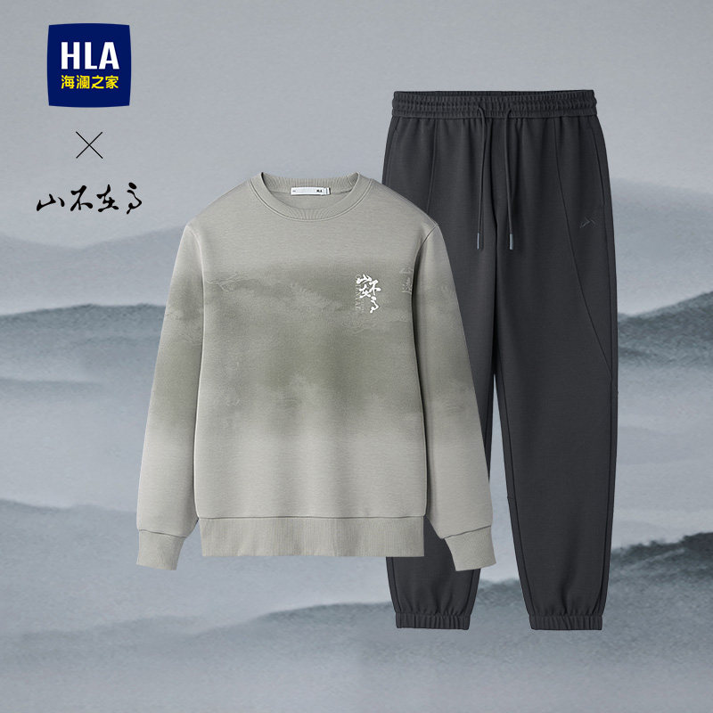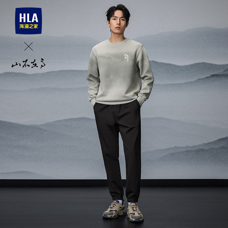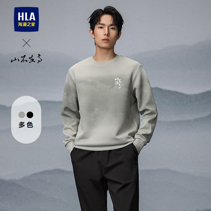HLA/海澜之家山不在高系列卫衣25秋季新款圆领立体印花柔软上衣男