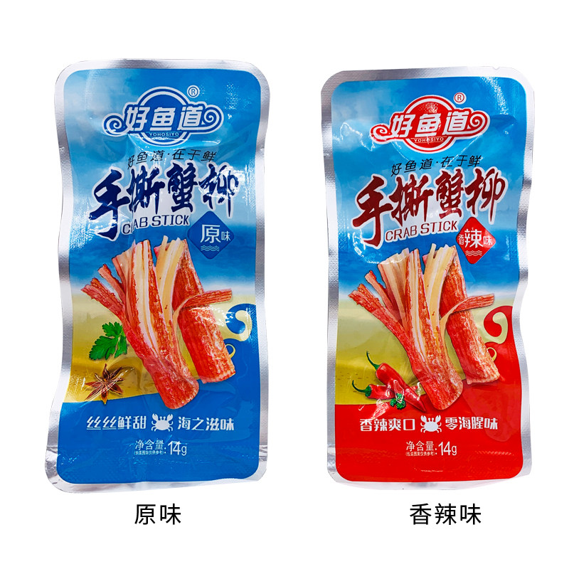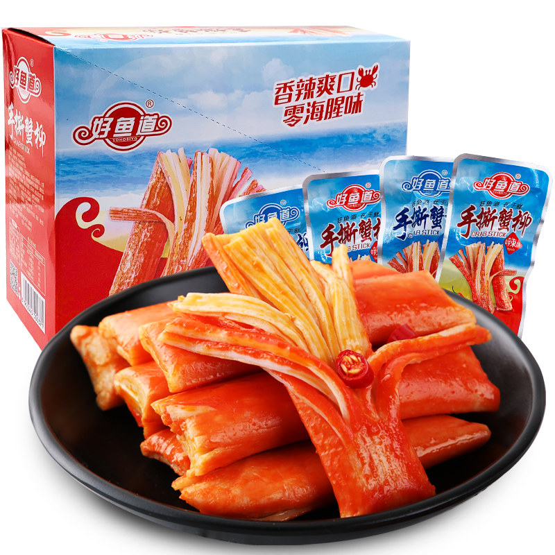 好鱼道手撕蟹柳棒即食网红休闲小零食品小吃辣味蟹肉原味海味香辣