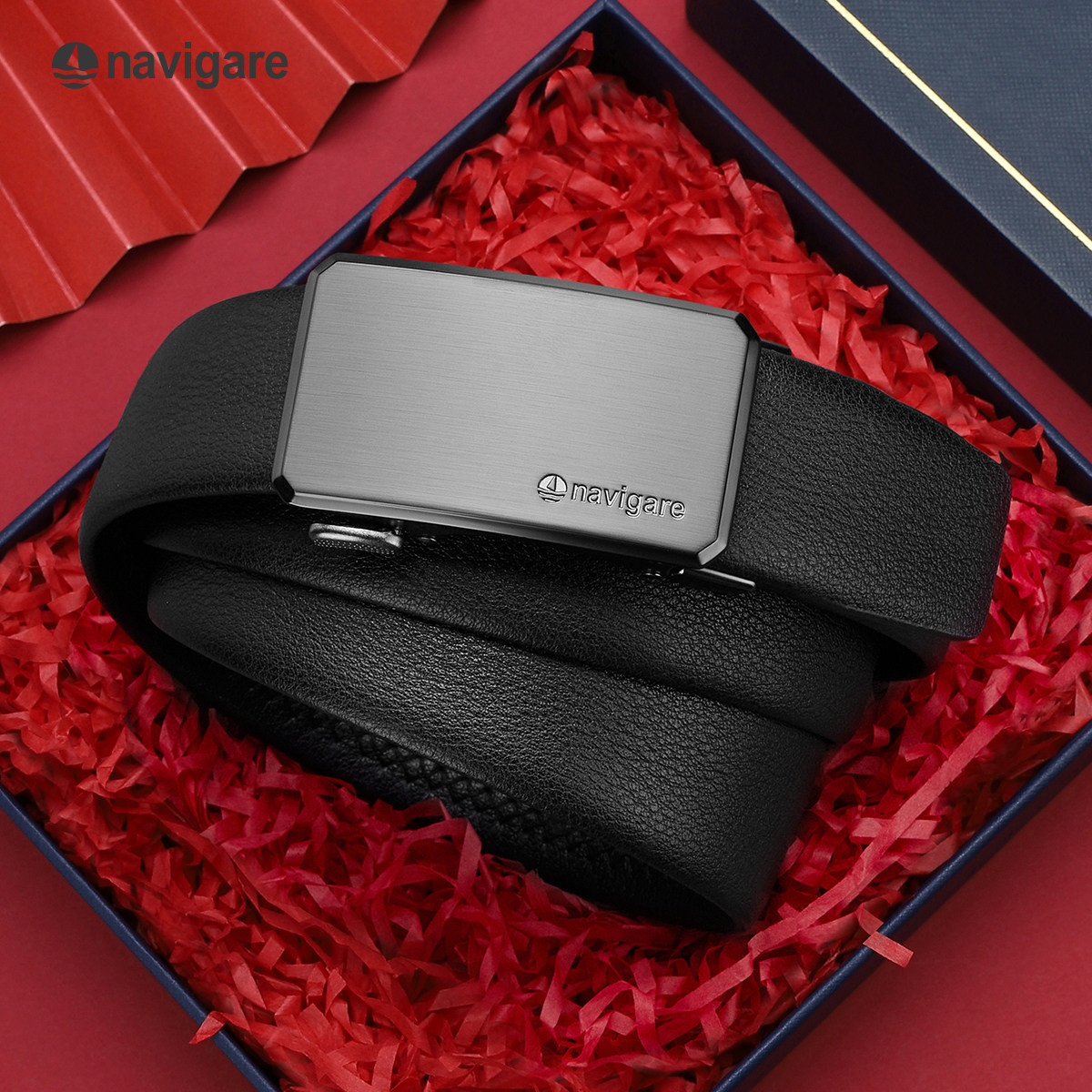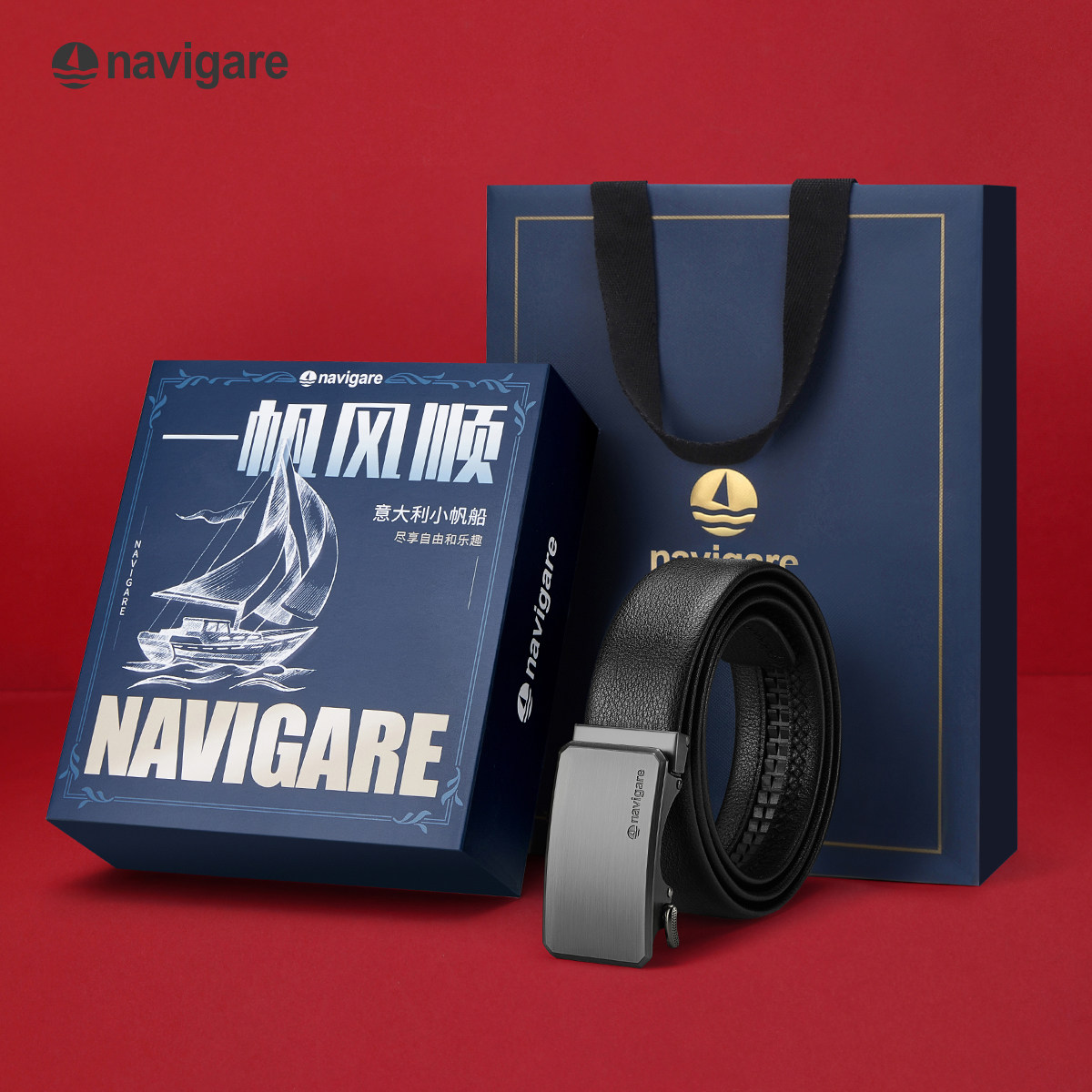 Navigare纳维凯尔意大利小帆船男真皮腰带自动扣男士头层牛皮皮带