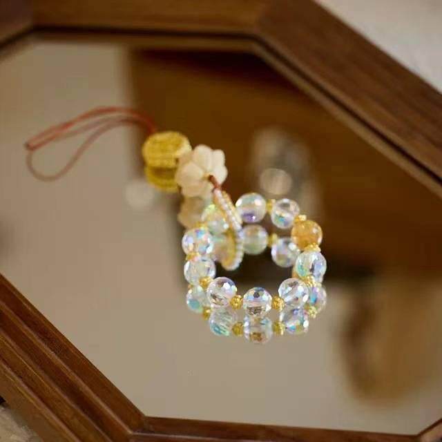奢华高级感水晶手提链条手腕短挂绳带夹片壳钥匙扣包包挂件潮