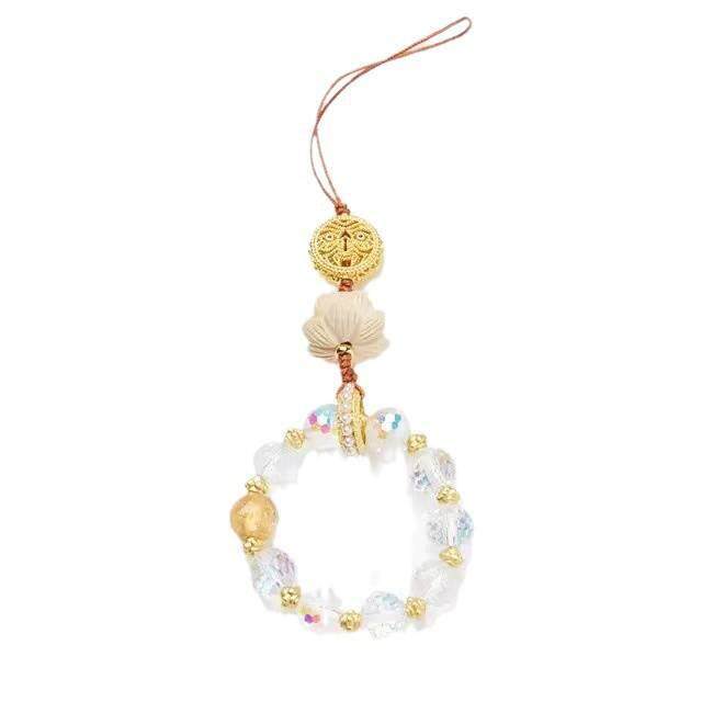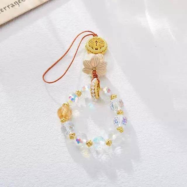 新中式国潮黄杨木莲花手机链包包挂件汽车挂饰炫彩香灰琉璃挂件