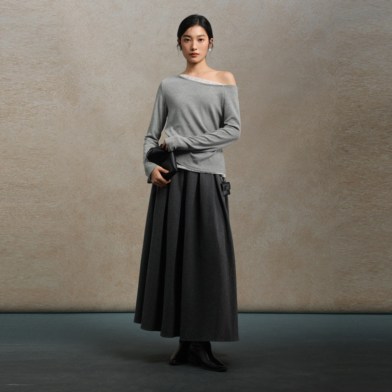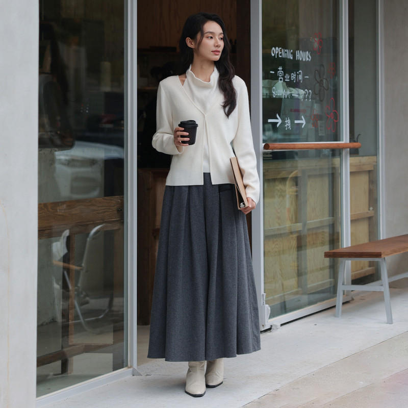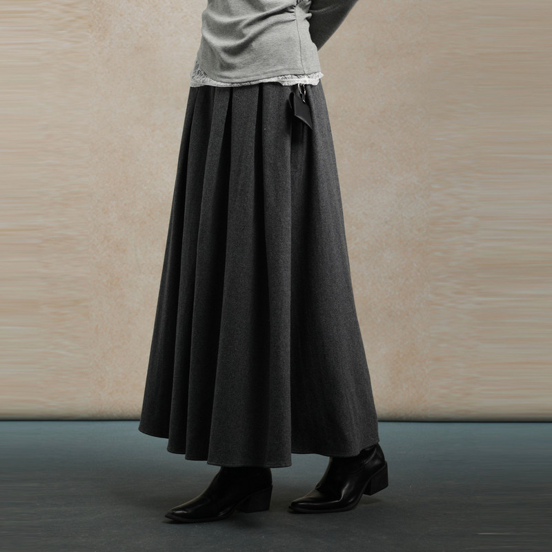 MJ STYLE灰色百褶西装裙女秋冬半身裙高腰休闲大摆a字过膝中长裙