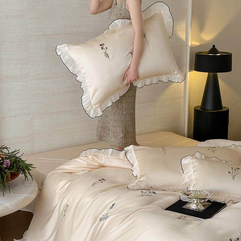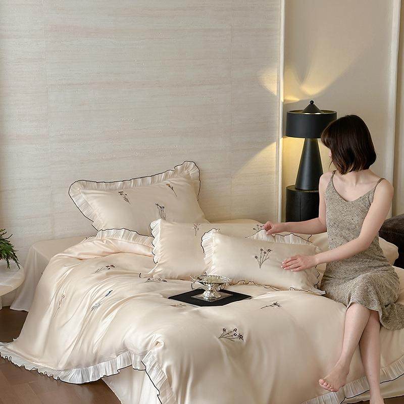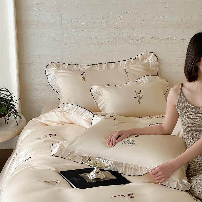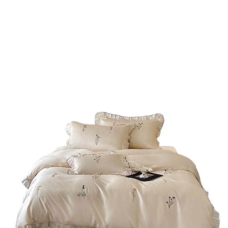 法式复古浪漫小花刺绣60兰精天丝四件套夏季凉感冰丝裸睡床单床品