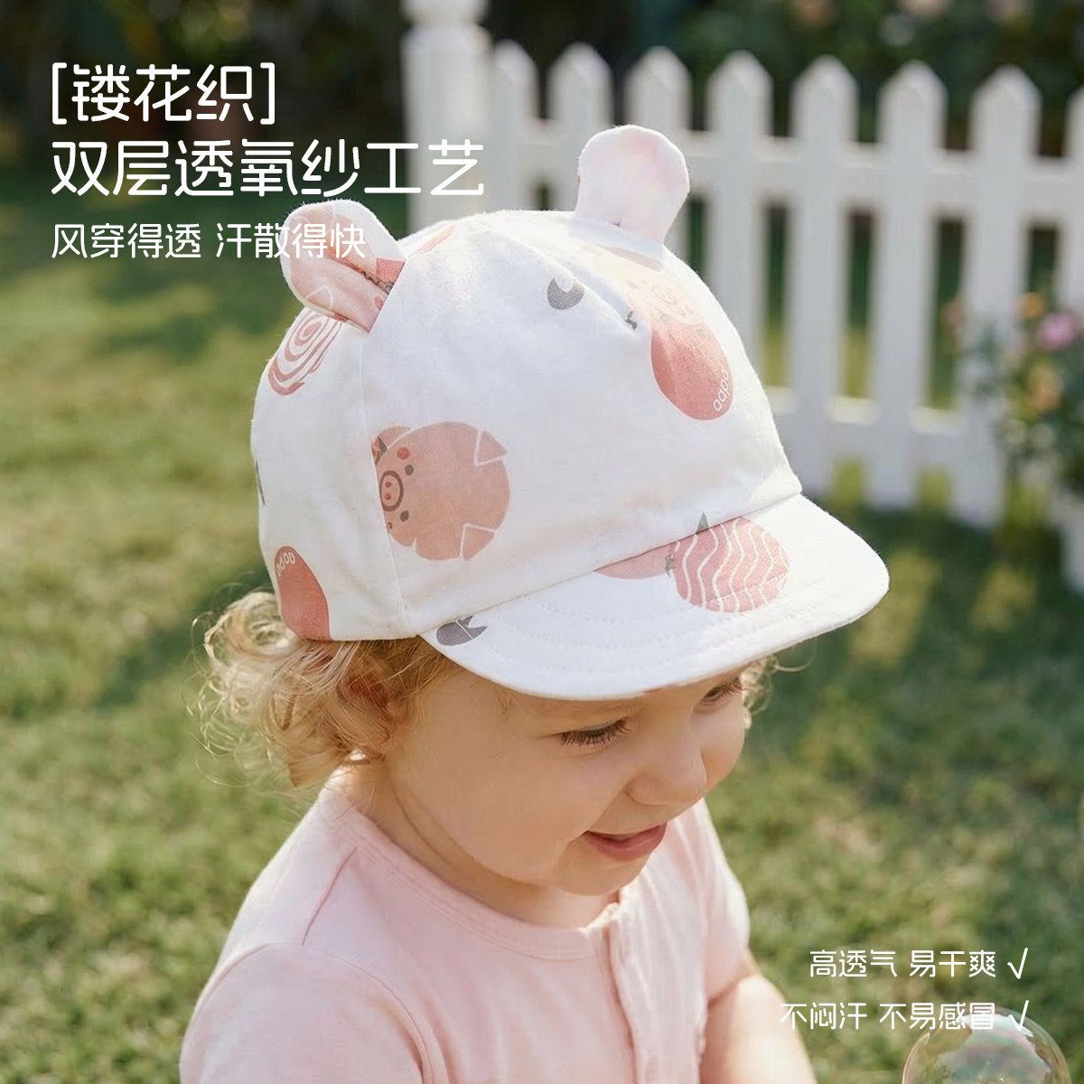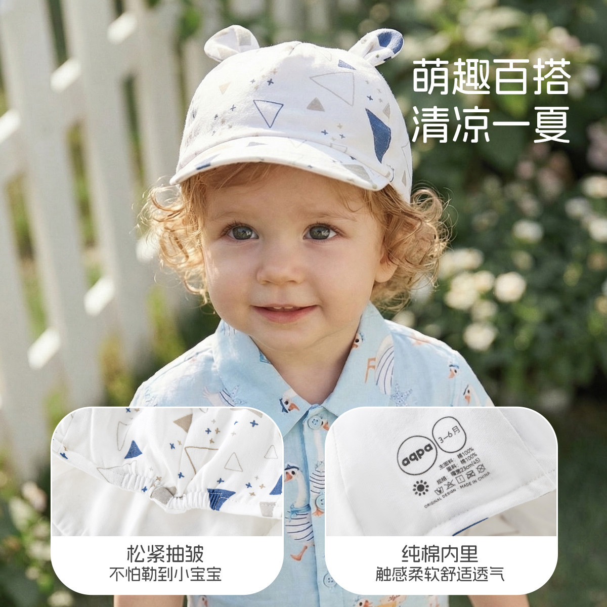 aqpa新生儿夏季帽子婴儿太阳帽男女宝宝外出防晒遮阳棉纱布鸭舌帽