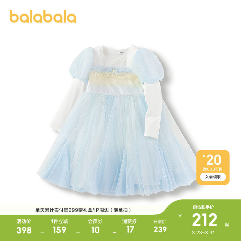 【balaOne】巴拉巴拉童装女童连衣裙2025新款春装网纱裙甜美洋气