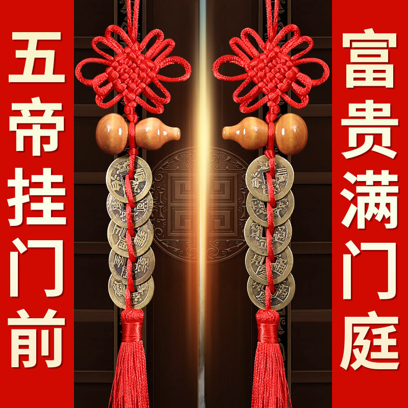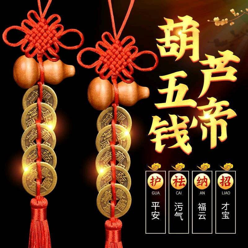 五帝钱葫芦挂件铜钱挂门客厅门卧室招财朱砂葫芦中国结乔迁聚财