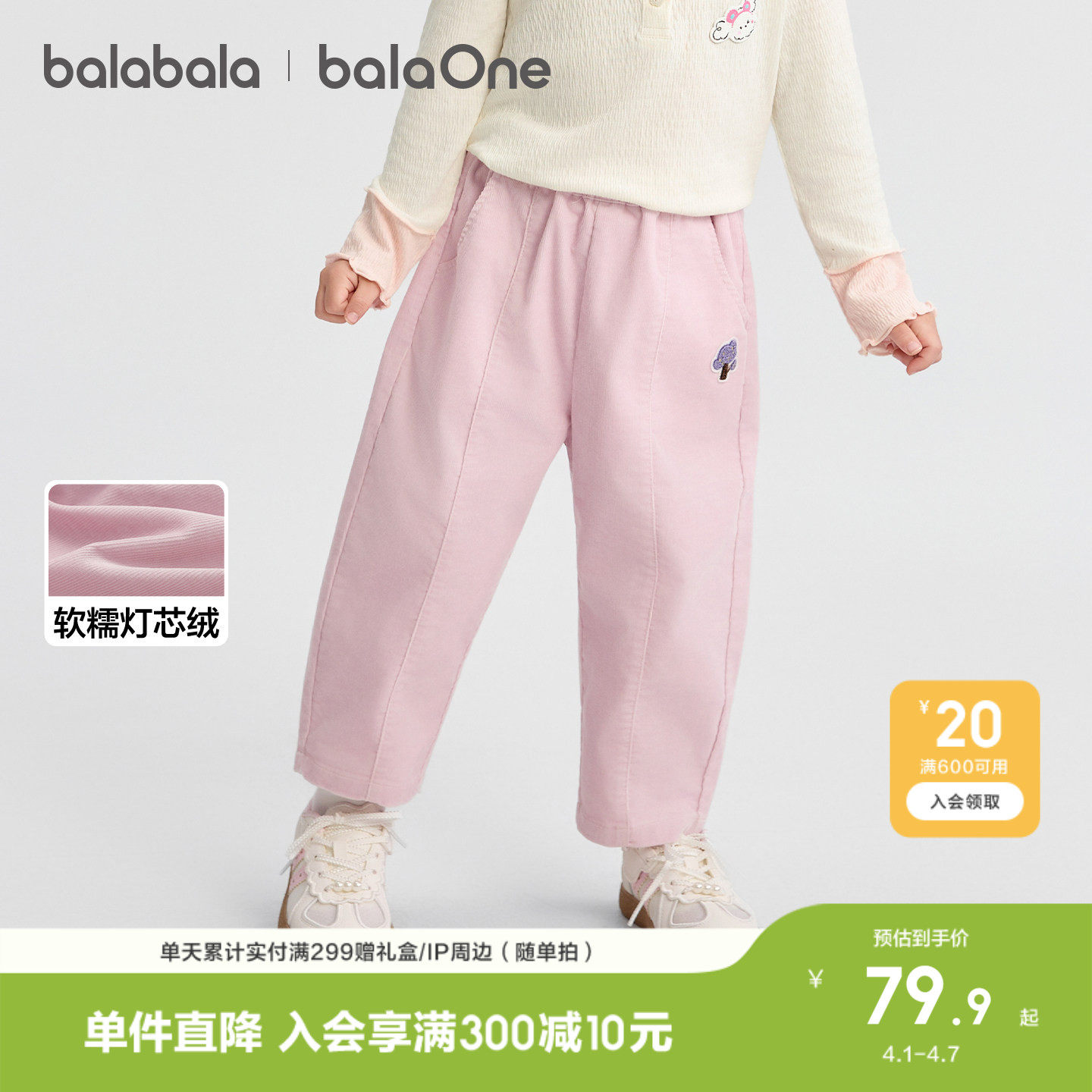 巴拉巴拉童装宝宝长裤男童宽松萝卜裤灯芯绒2026春装休闲小童裤子