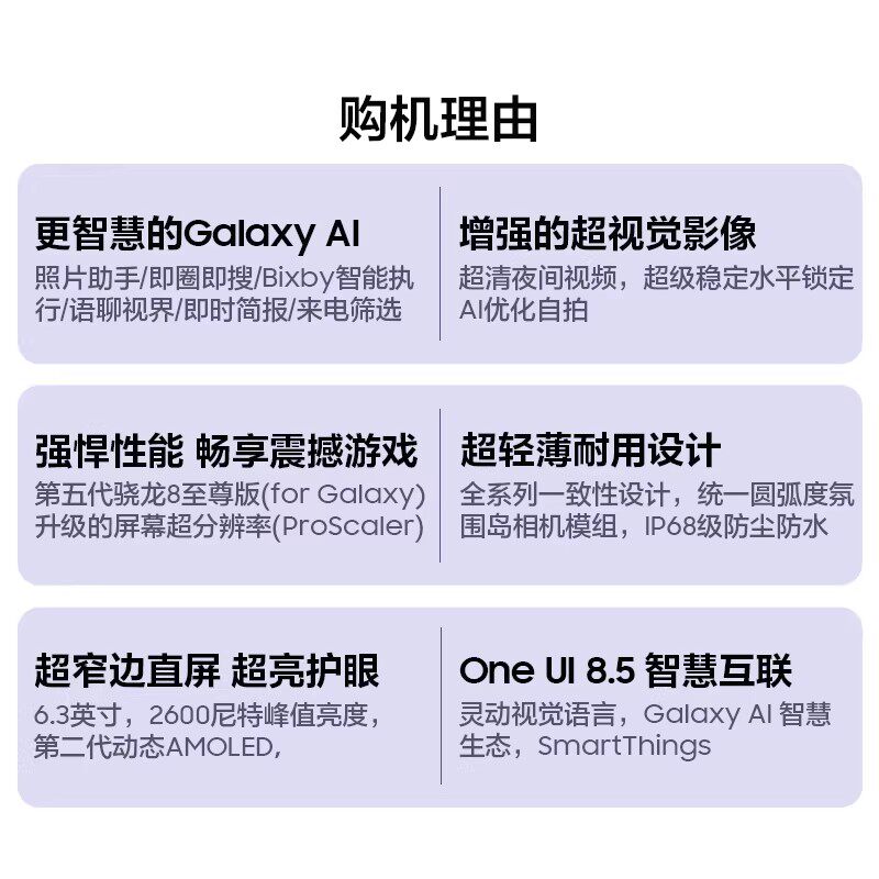 【新品上市国补到手5499元】三星Galaxy S26 AI智能手机第五代骁龙8至尊版超轻薄耐用设计5000万像素正品