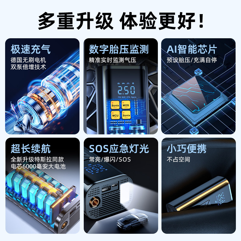 凌匠X5多功能SUV车载充气泵双缸高压大功率电动汽车用轮胎打气泵
