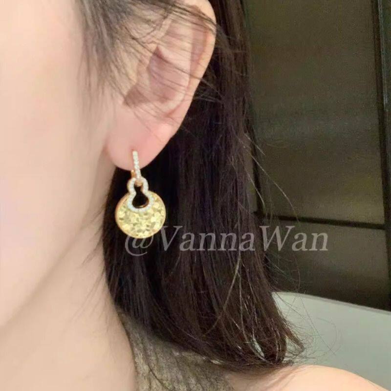 VanWan碎冰冰!“福禄"葫芦耳环女锆石耳饰爆闪两戴可拆耳圈金色