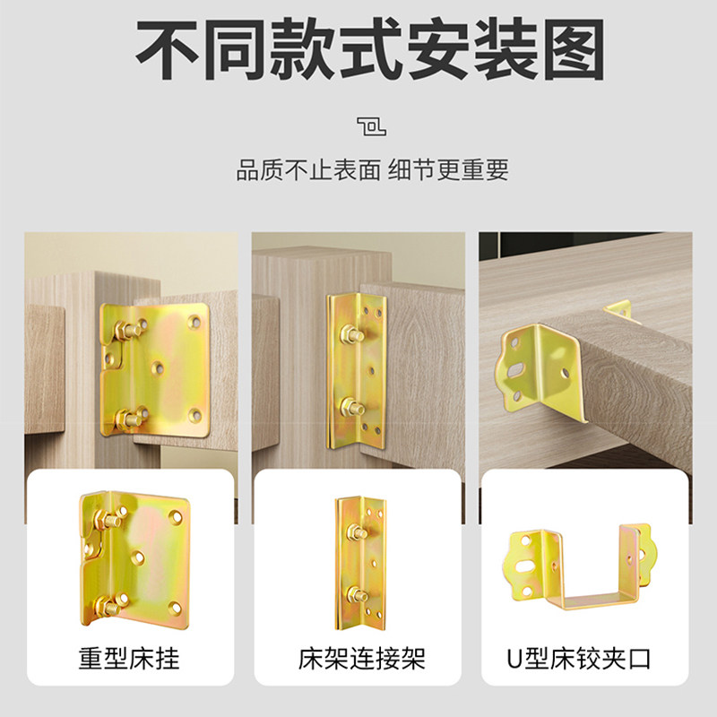 加厚床关铰U形床挡实木床横梁托架床耳朵床挂钩插扣床板固定托架