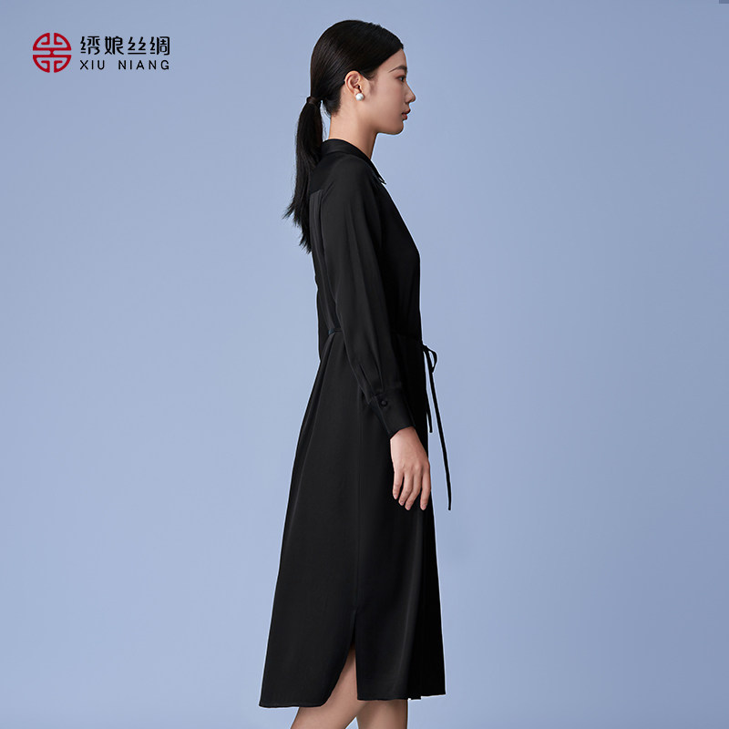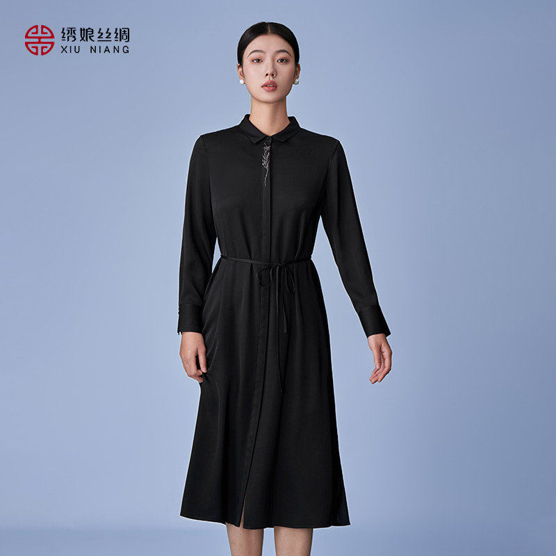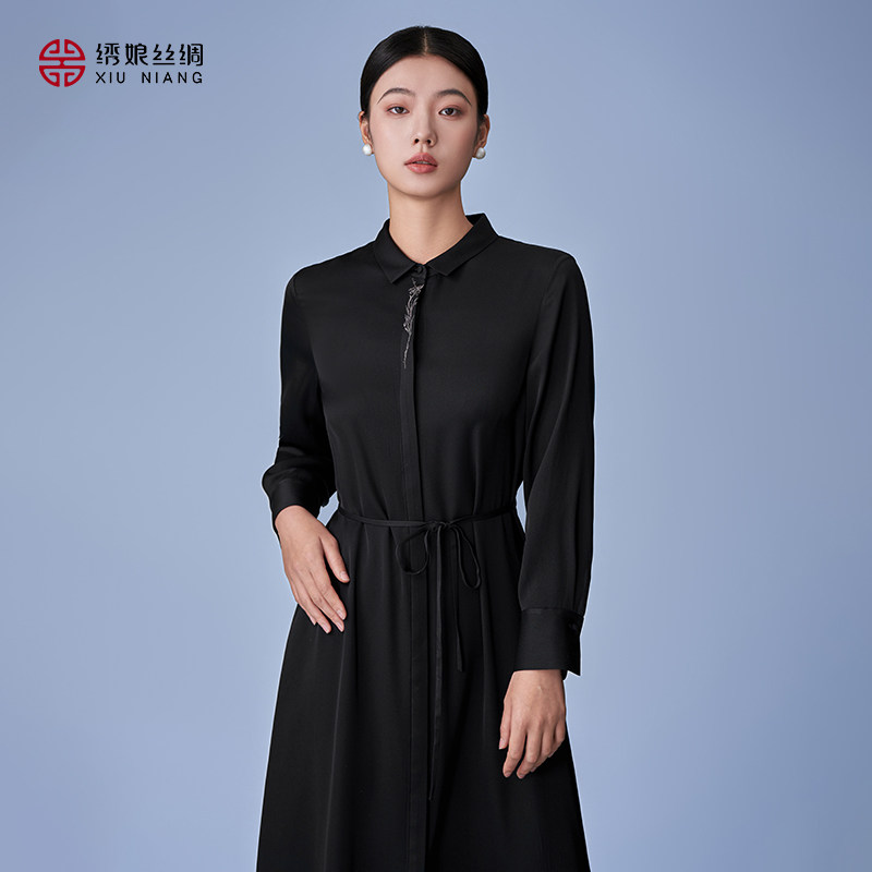 绣娘丝绸桑蚕丝连衣裙女夏季薄款新款新中式黑色长裙修身明美裙子