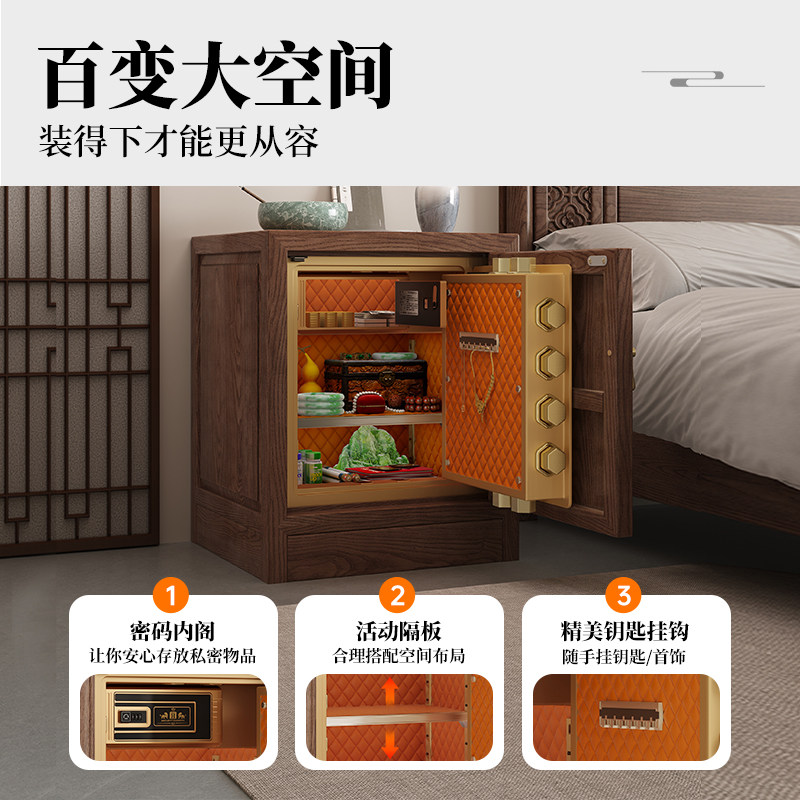 虎牌床头柜保险柜一体新中式古典家用隐形实木床头保险箱2026新款存钱智能指纹密码箱WiFi防盗隐藏式小型夹万