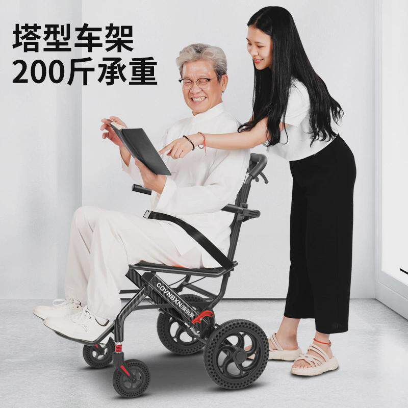 多功能轮椅折叠轻便小型老人专用手推代步车老年超轻便携易旅行