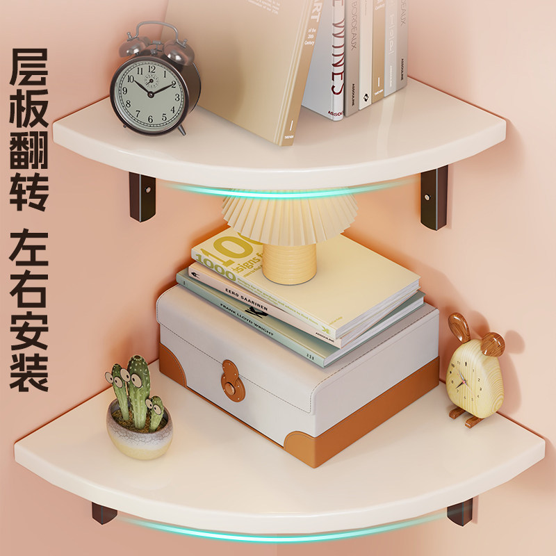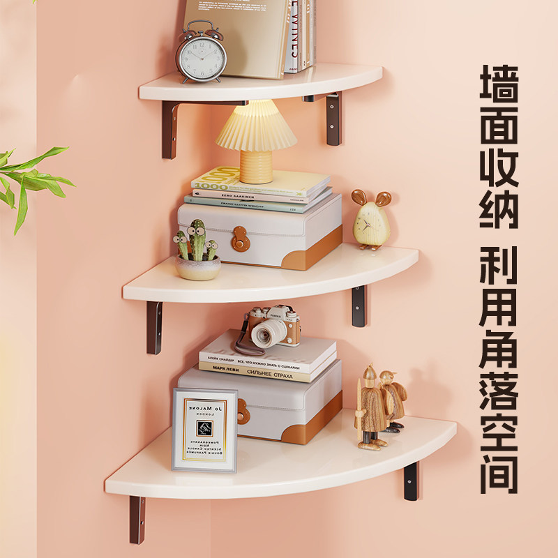 墙上置物架卧室墙壁转角收纳隔板壁挂书架床头免打孔三角架子墙面
