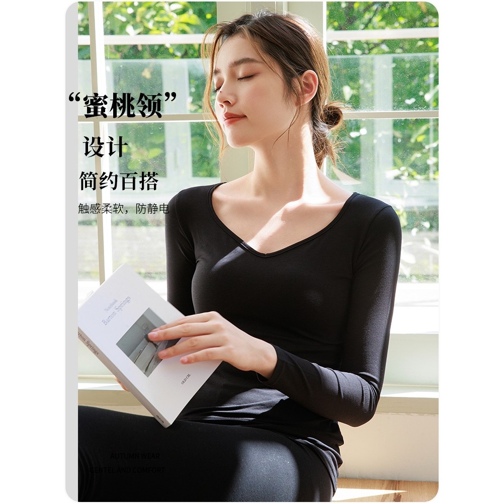 热风圈秋衣秋裤套装女莫代尔薄款美体保暖内衣打底衫大码线衣贴身