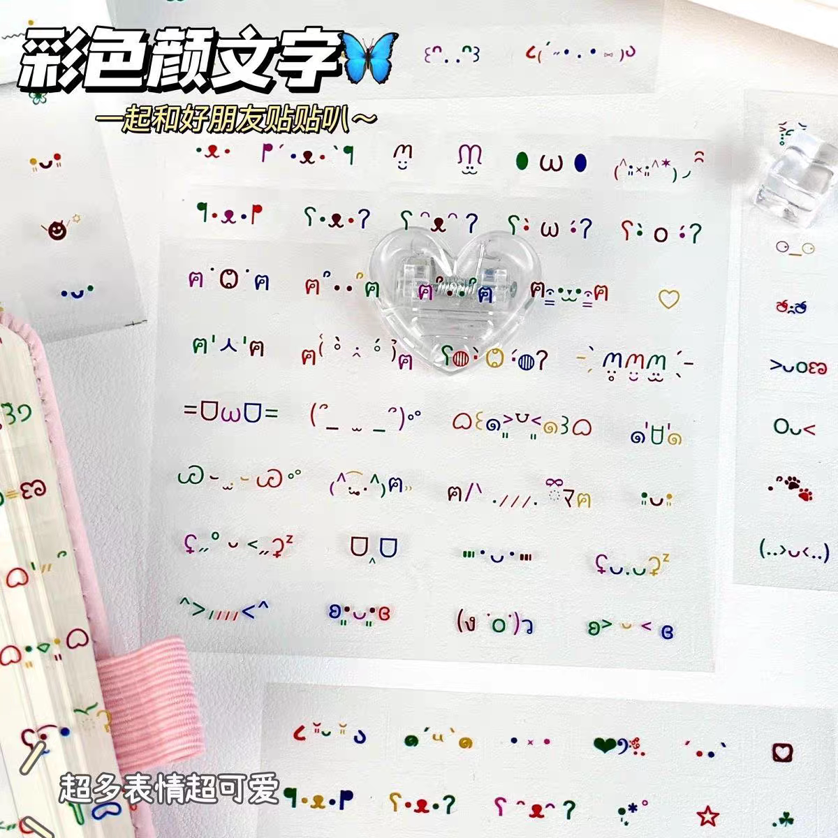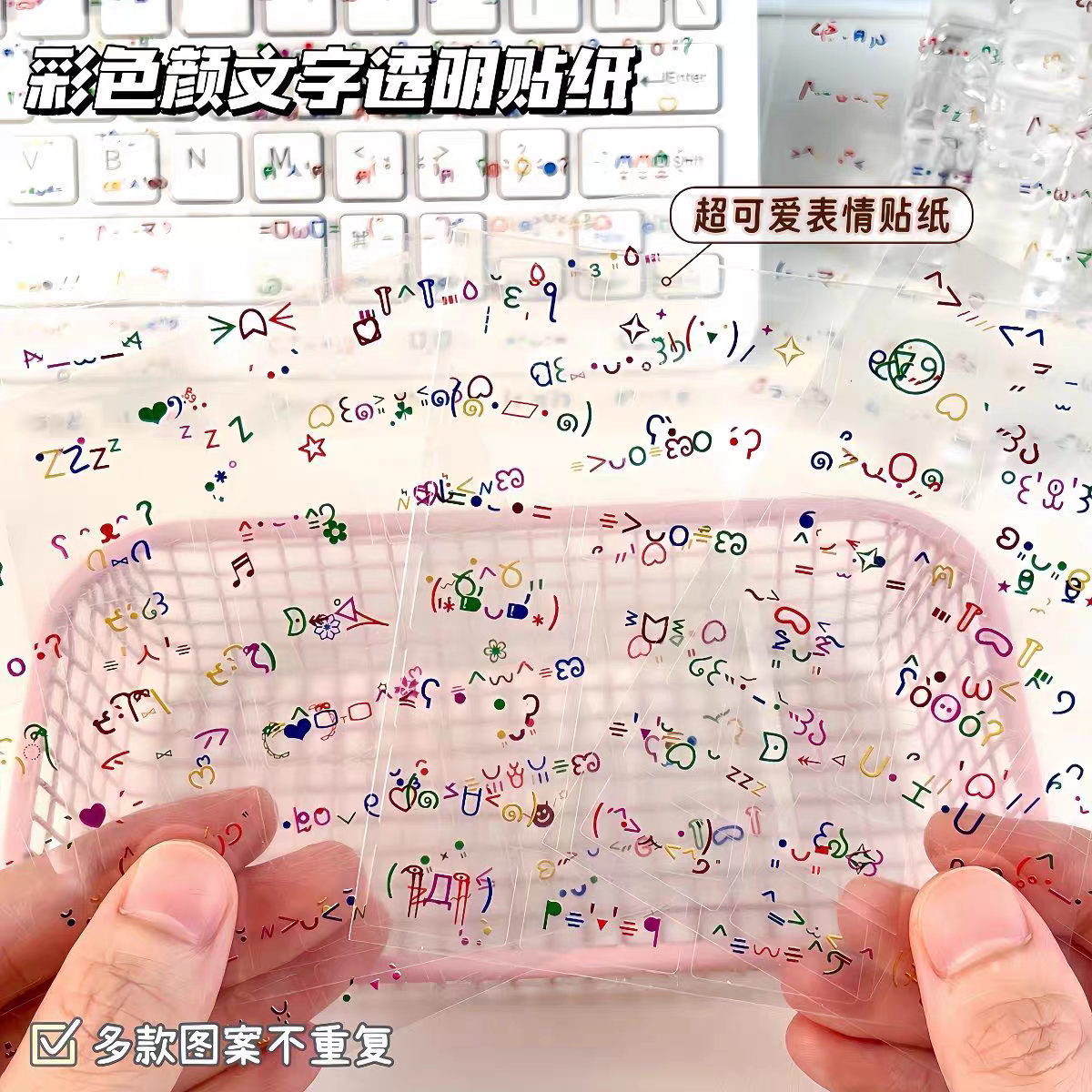彩色颜文字透明贴纸简约diy手帐文字装饰表情贴可爱符号咕盒素材
