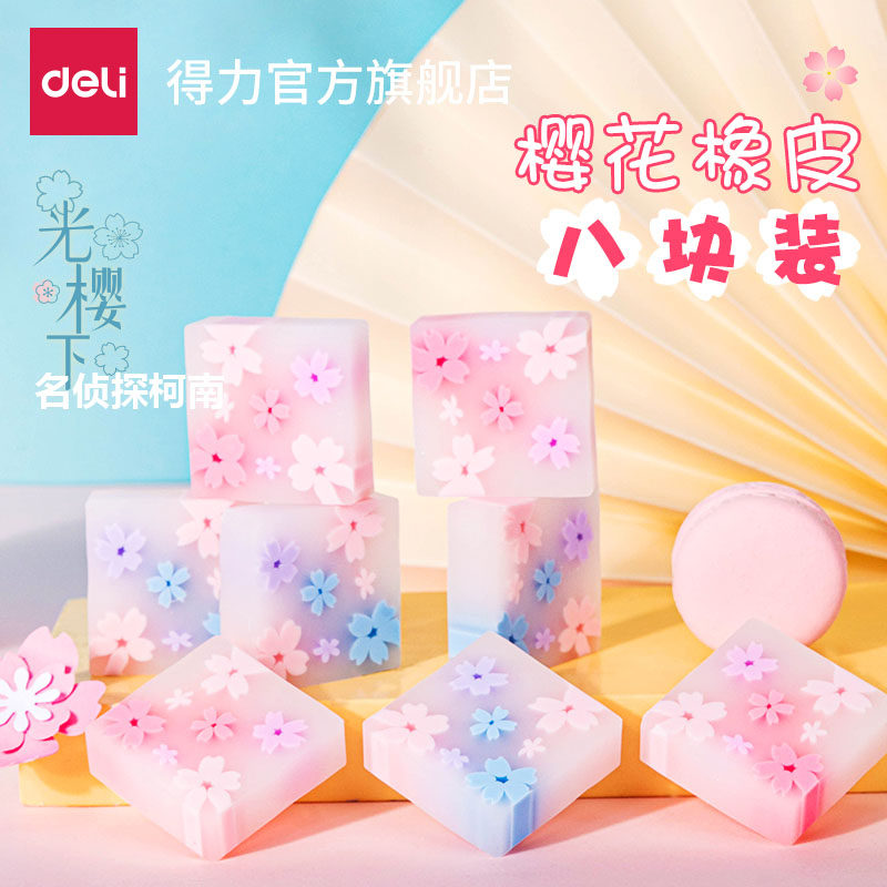得力2B橡皮小学生专用樱花橡皮干净不留痕幼儿园美术2B橡皮擦半透明糖果色擦字铅笔素描文具学习用品