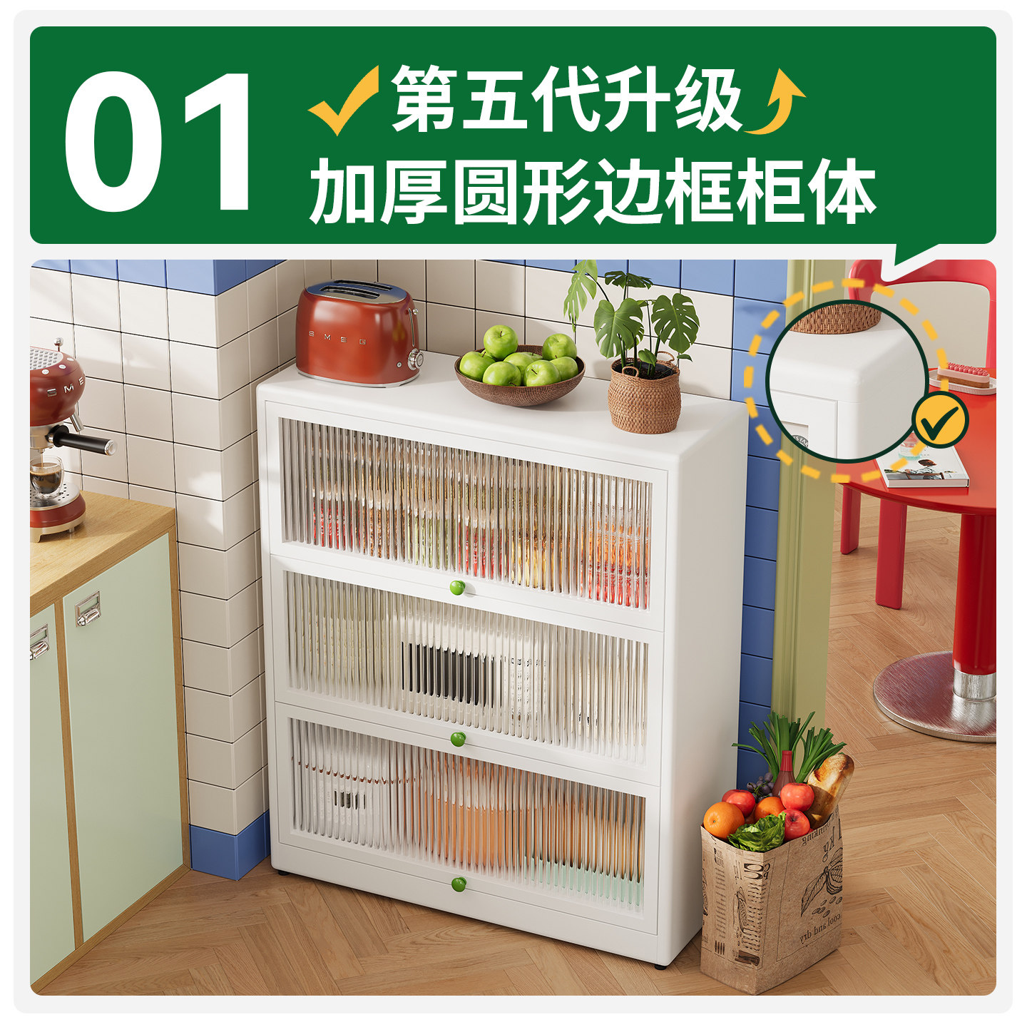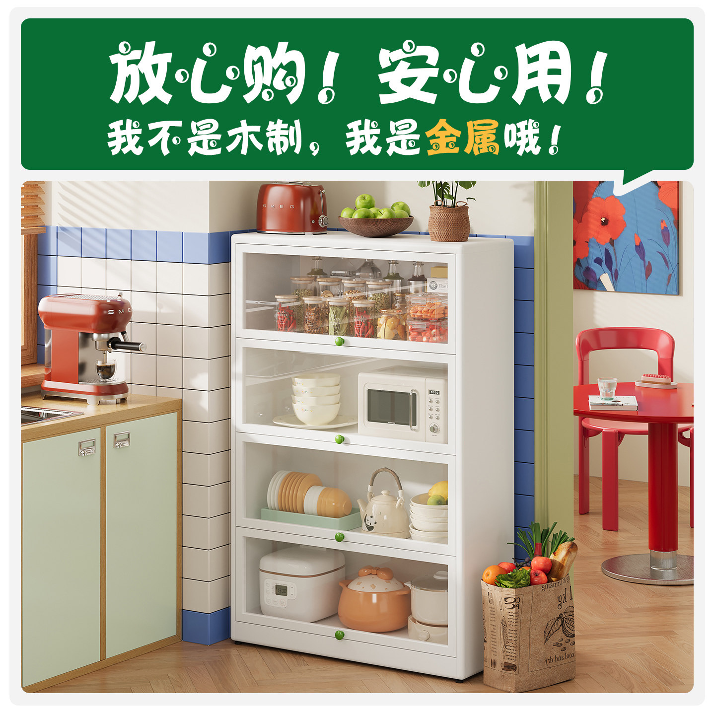 新型创意钢制厨房置物架家用分层带门防潮防尘餐具铁艺放置小边柜