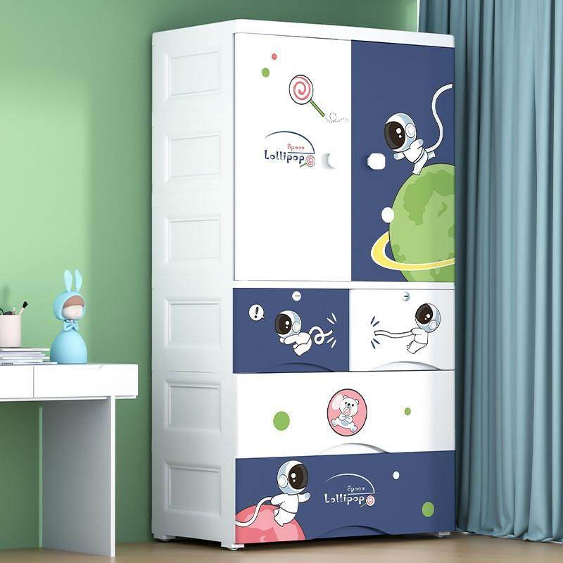65面宽特大加厚儿童收纳柜子塑料储物柜抽屉式宝宝双开门挂衣柜
