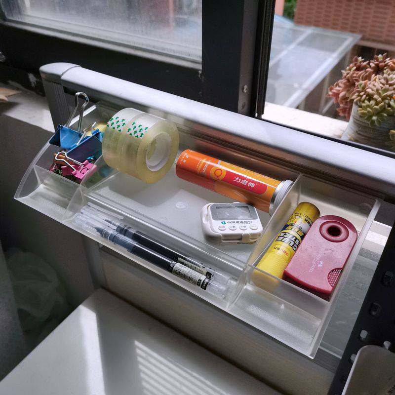 隔断塑料文具托架 屏风下挂缝半透明白笔架 工位插缝挂槽名片挂件