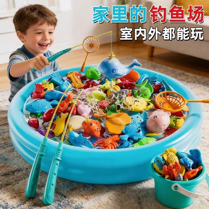 儿童磁性钓鱼玩具池家用宝宝塑料捞鱼发光鱼套装小男孩女孩12-3岁