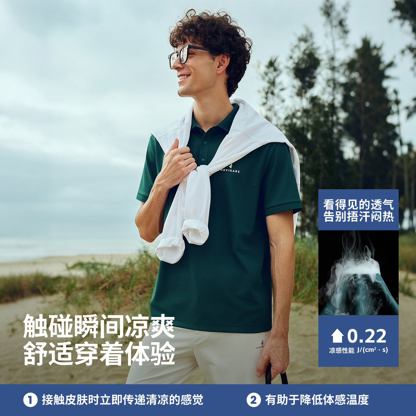 Navigare意大利小帆船轻薄短袖Polo衫男2026夏装户外速干翻领T恤