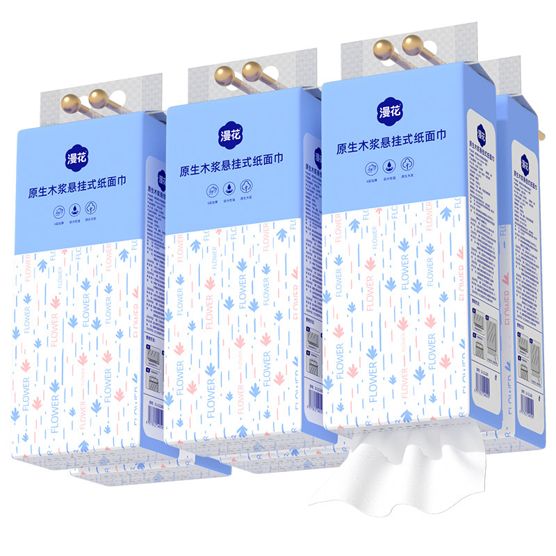 漫花抽纸悬挂式卫生纸巾整箱批发家用实惠装原生木浆面巾纸餐巾纸