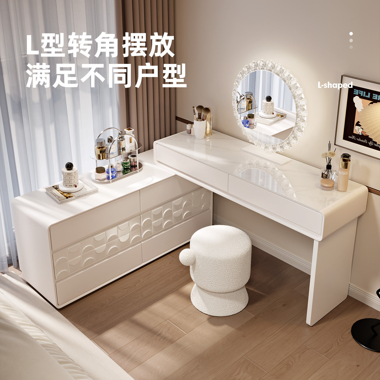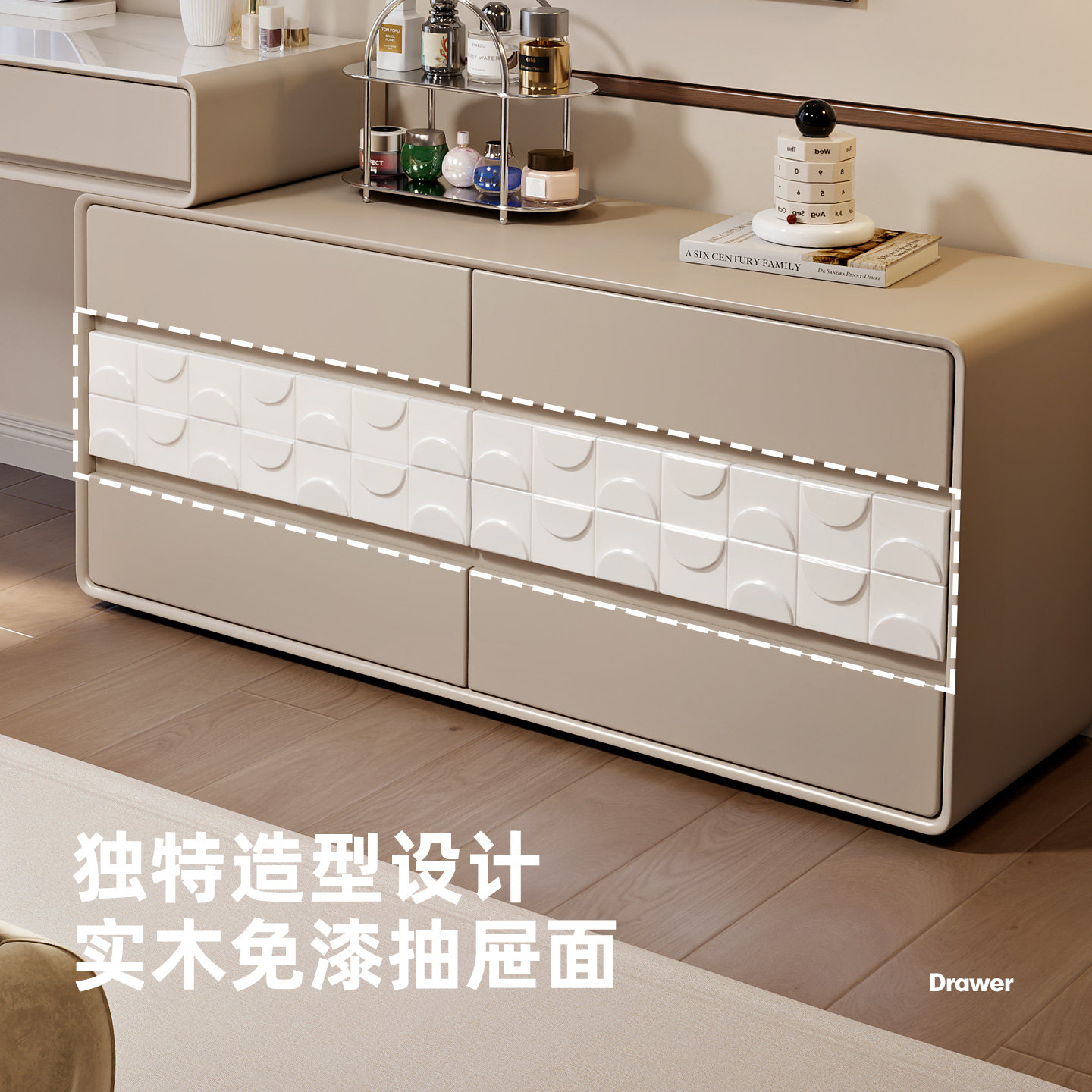 2025新款梳妆台卧室现代简约小户化妆桌收纳一体柜30cm实木床尾柜