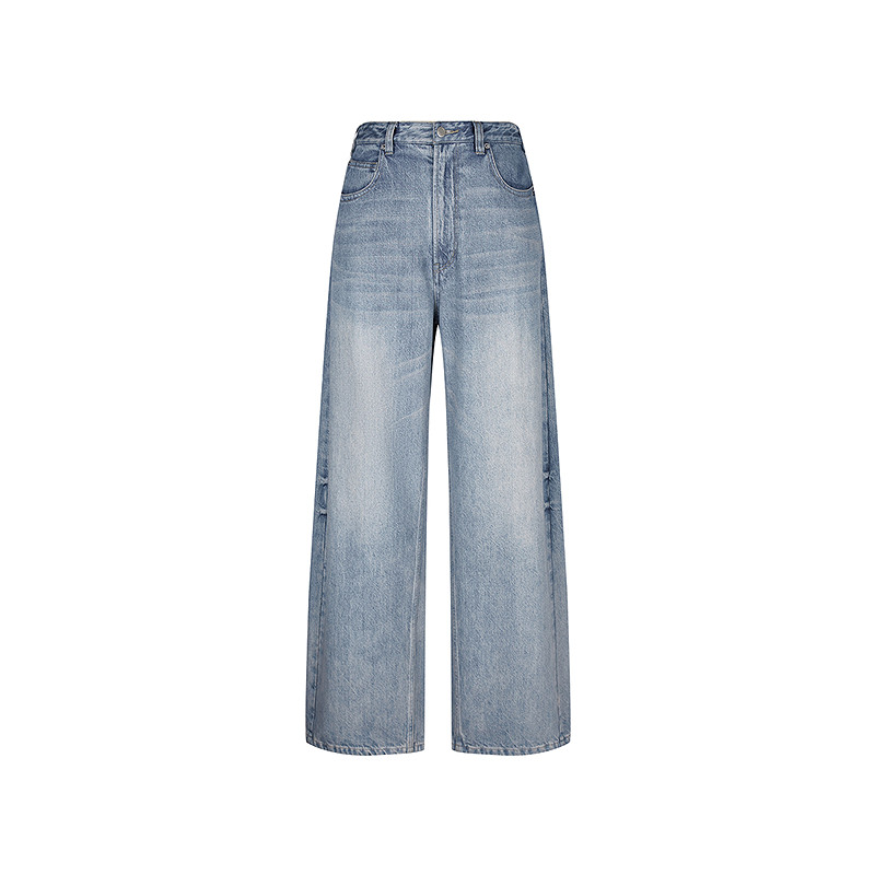 森马牛仔裤女春季打褶长裤宽松2026新款弯刀裤甜酷美式高街阔腿裤
