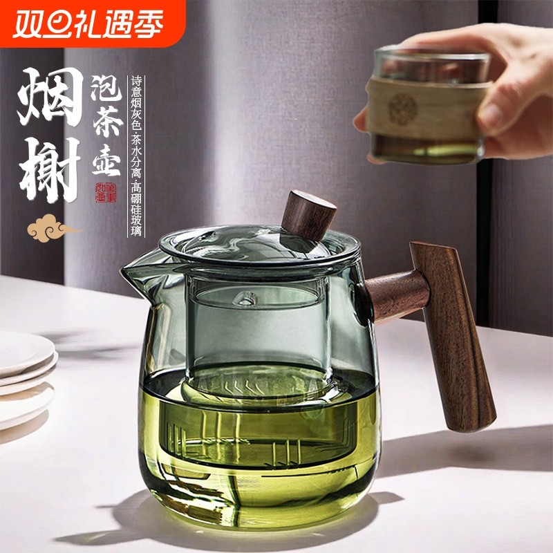 泡茶壶茶水分离杯家用茶具套装办公室玻璃耐高温煮茶壶木侧把茶壶