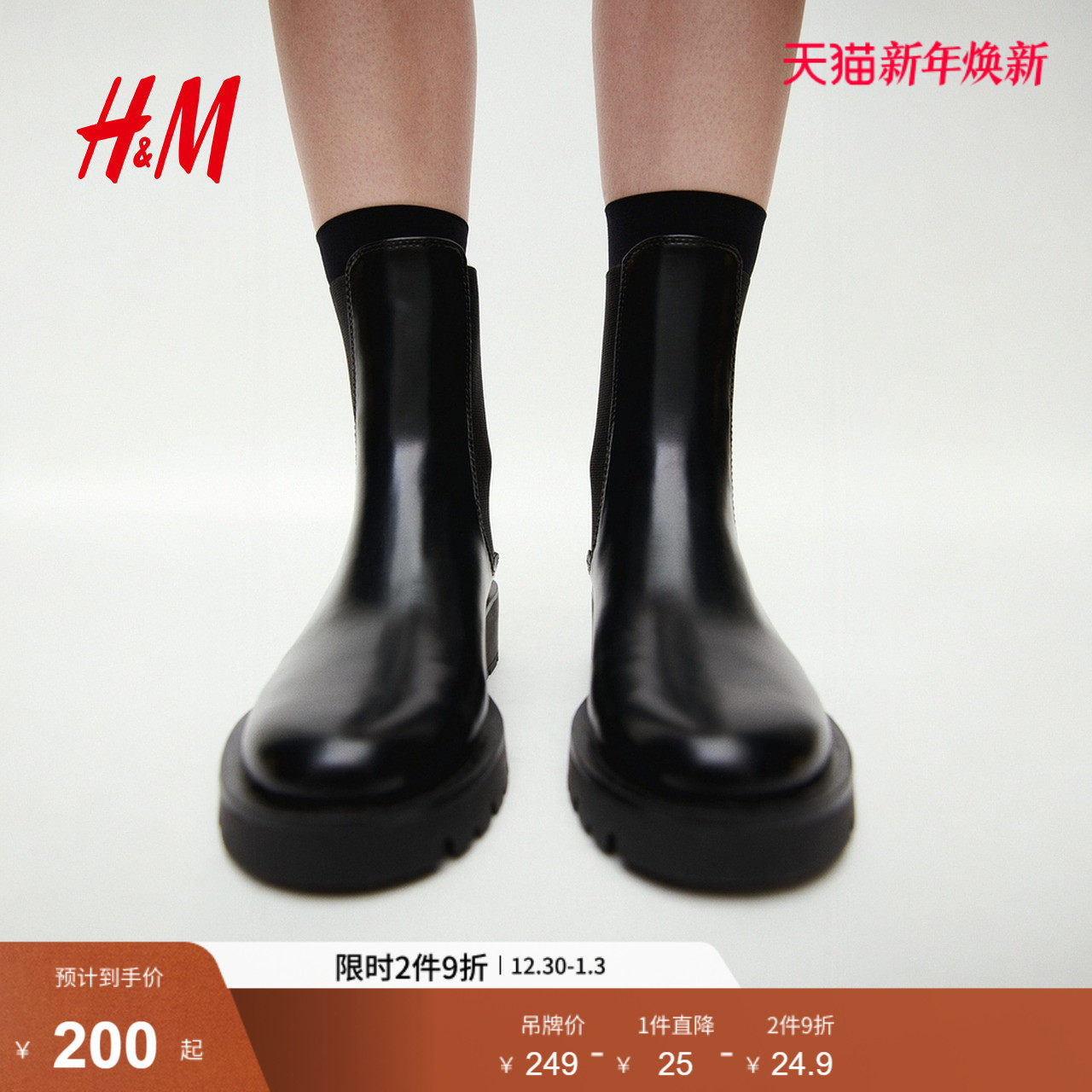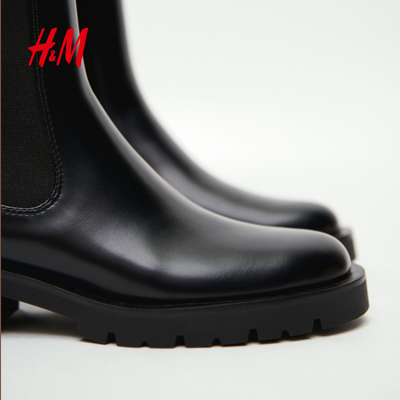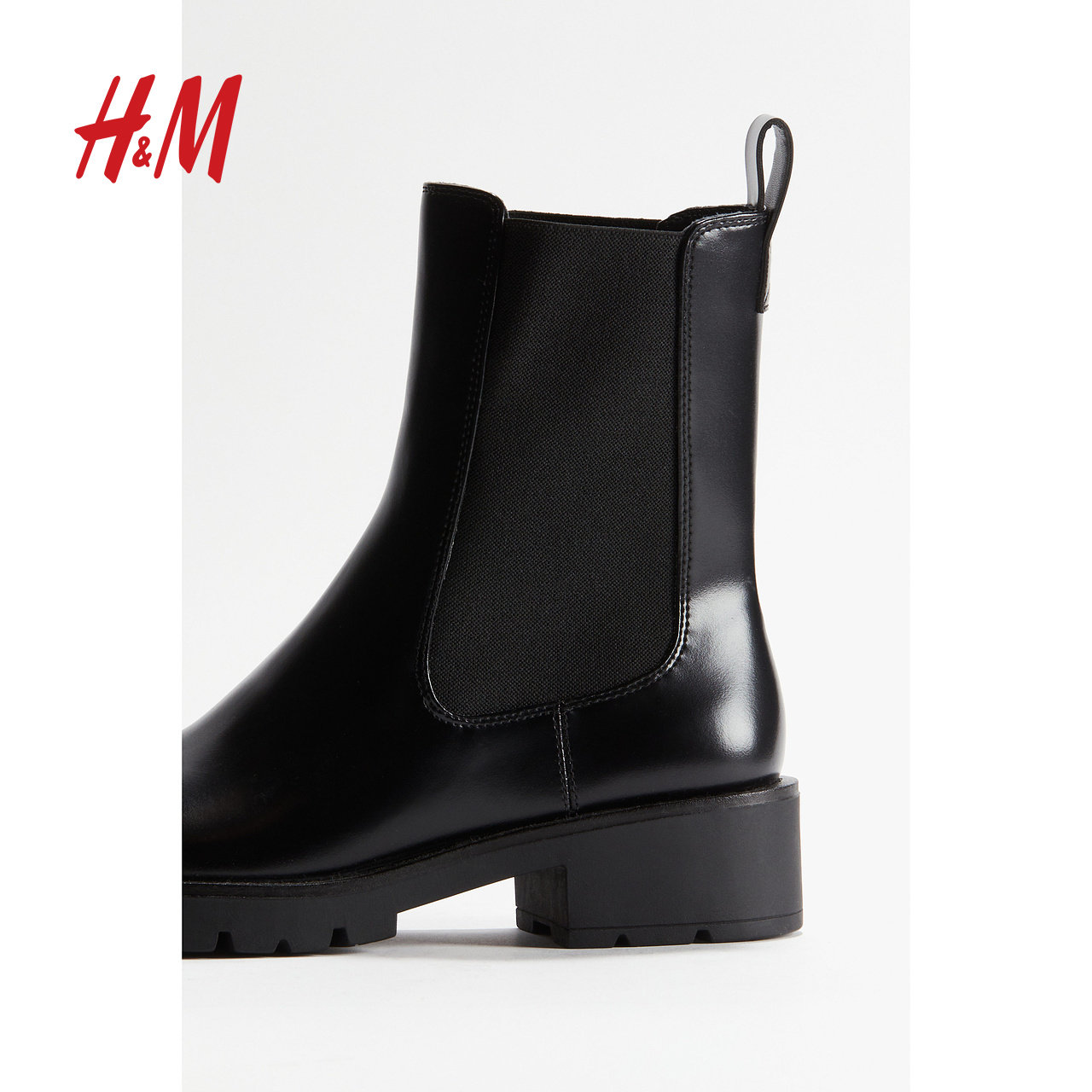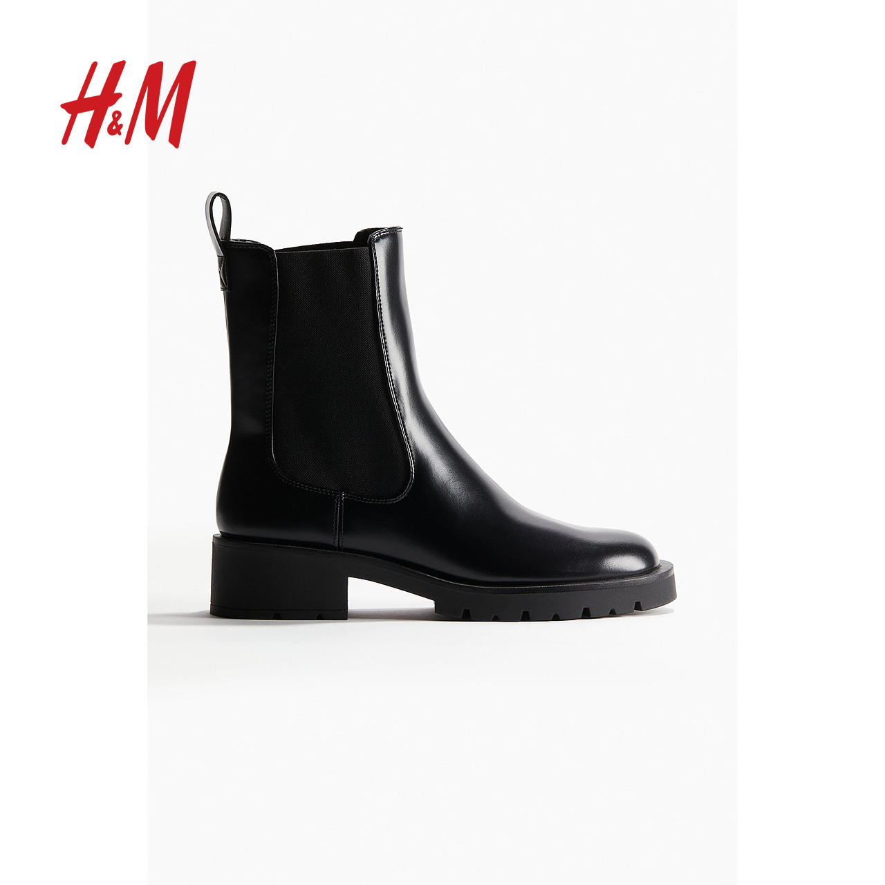 HM女鞋靴子2024冬季新品女士休闲时尚中筒无内里切尔西靴1240562