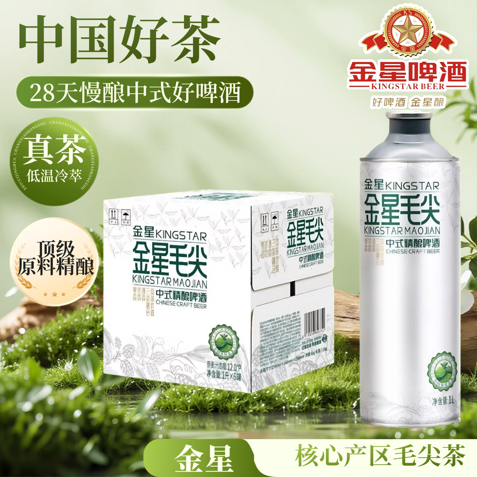 金星毛尖中式精酿啤酒龙井碧螺春冰糖葫芦冰镇西瓜茉莉1L*6罐蜜桃