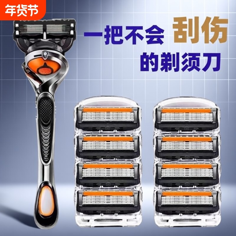 进口6层刀片剃须刀利亚刮胡刀手动刀片六层刀头男刮毛刮头胡子刀