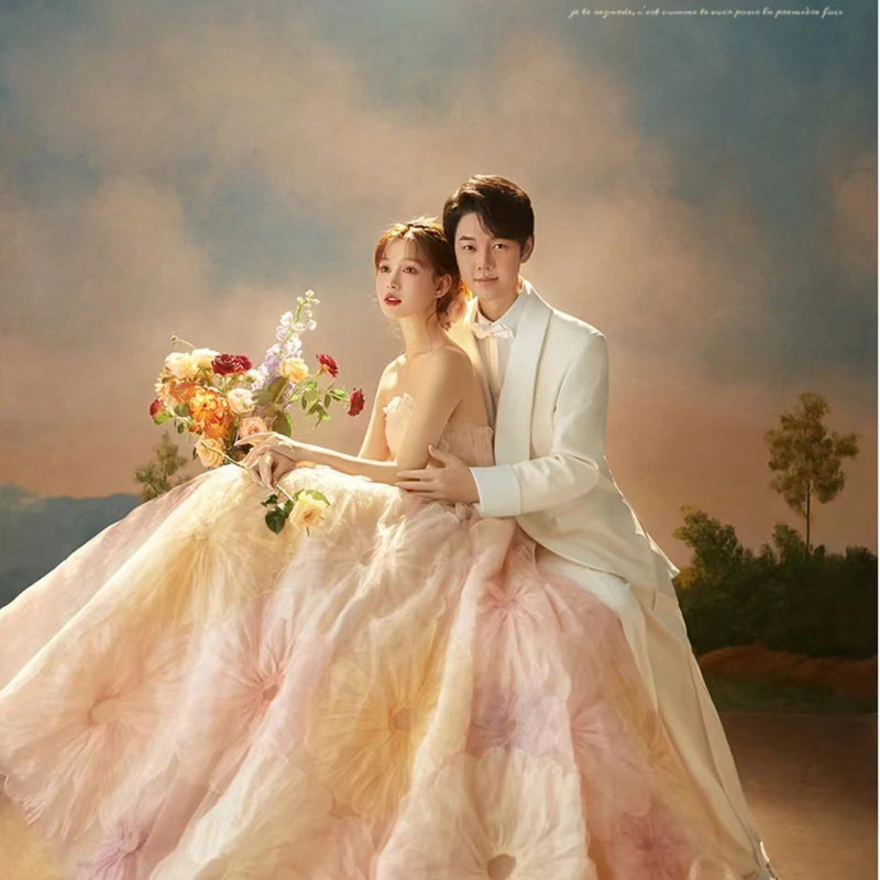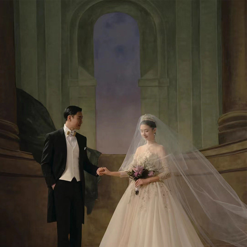 影楼婚纱拍照背景布复古风景油画背景布纯手工手绘画摄影拍照道具