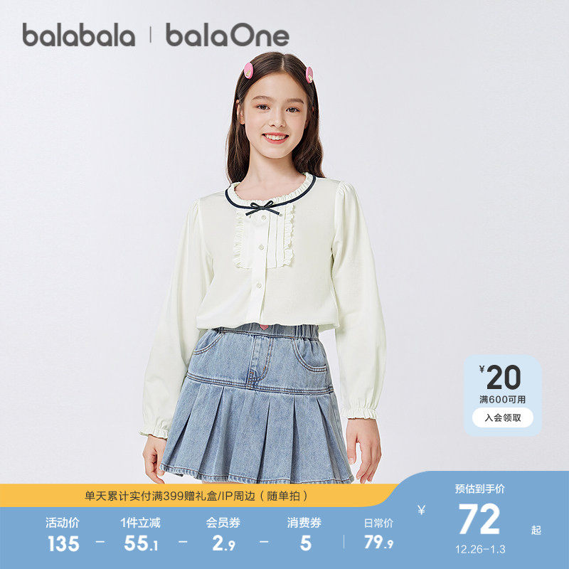 巴拉巴拉童装女童衬衫儿童长袖衬衣2025新款秋学院风凉感抗菌百搭