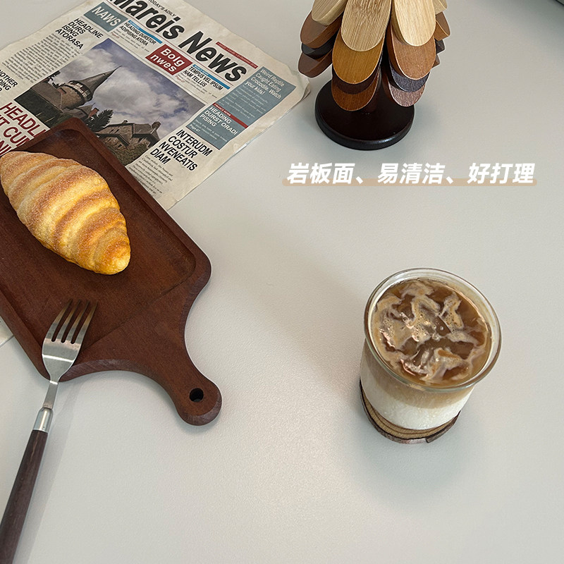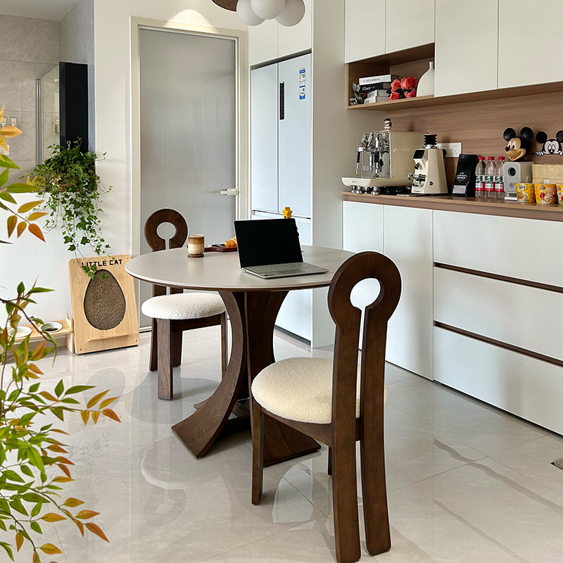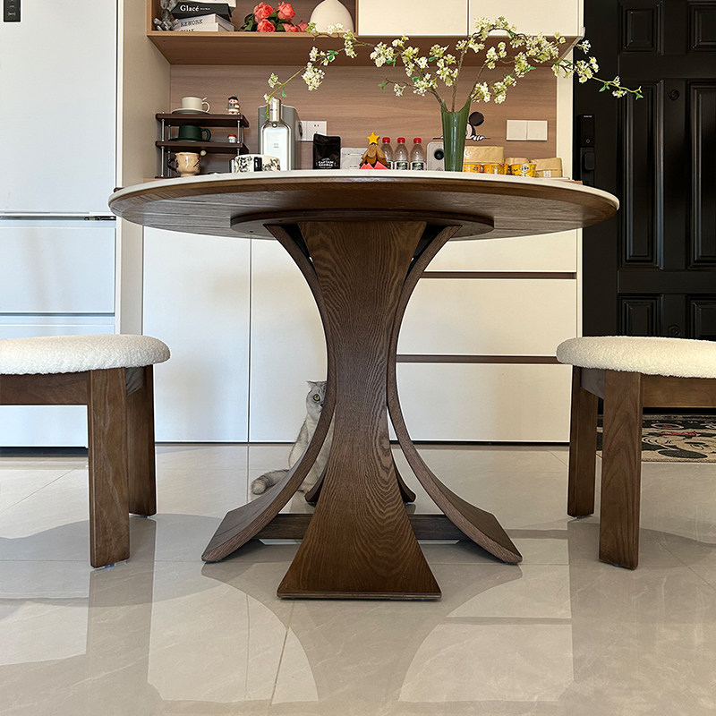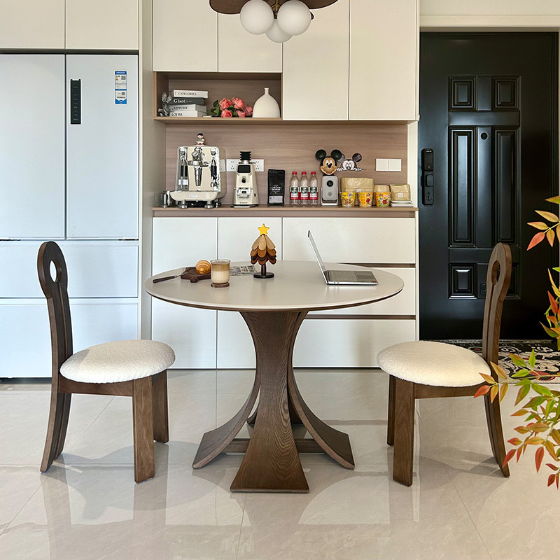 岩板餐桌圆形家用洽谈桌轻奢高级感设计师款中古风实木餐桌椅组合