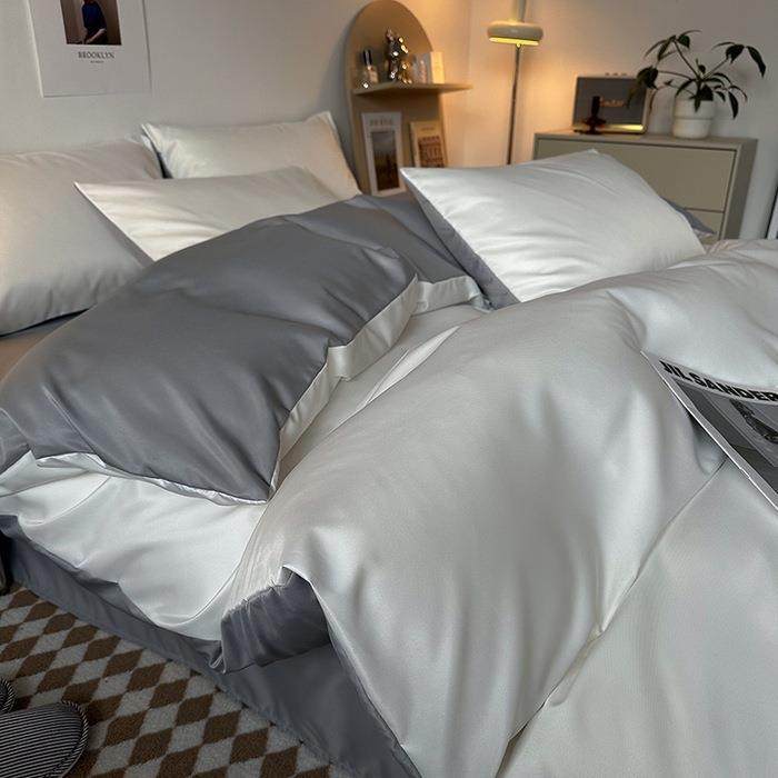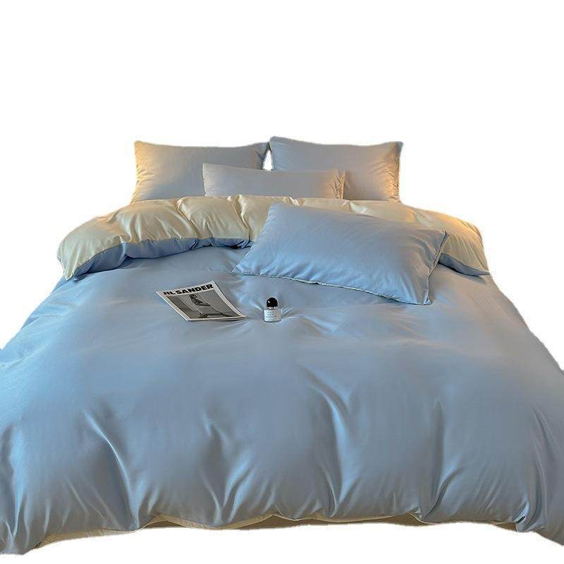 2025新款凉感冰丝纯色轻奢水洗真丝床上四件套床单学生宿舍三件套