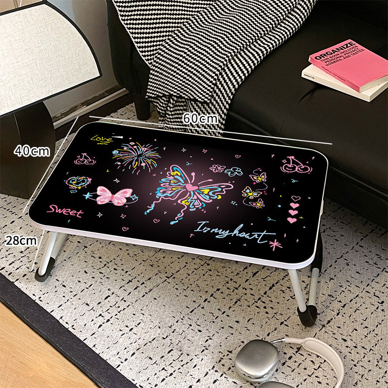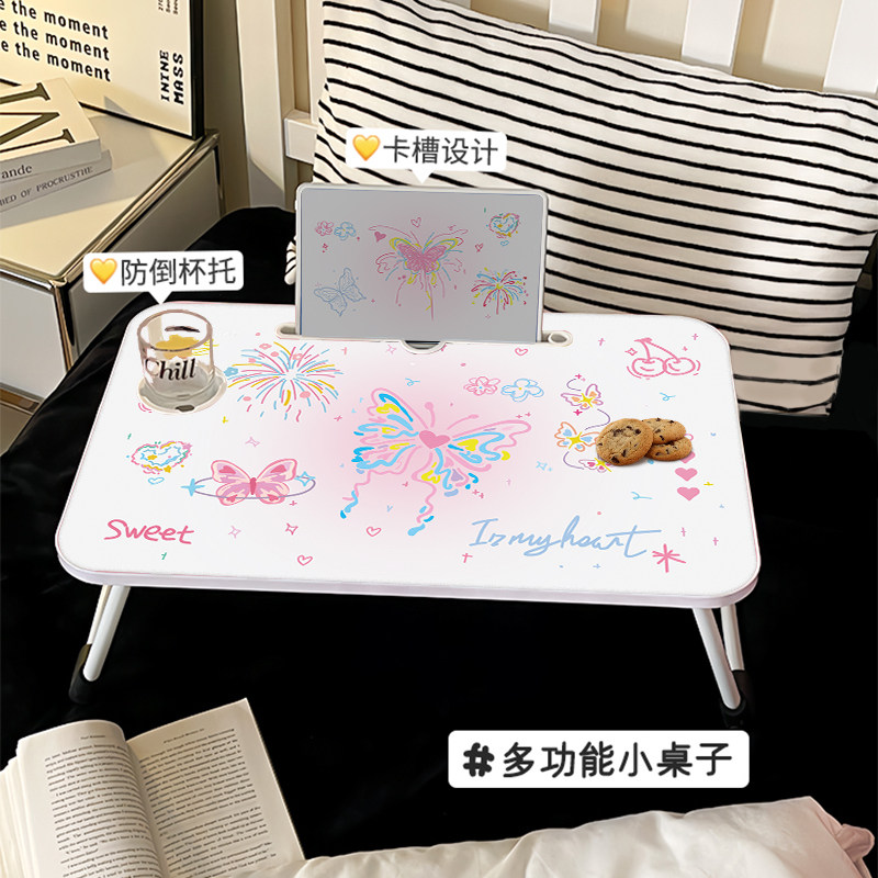 涂鸦蝴蝶床上小桌子寝室女生上下铺可折叠可爱彩色儿童卧室学习写字书桌笔记本电脑桌懒人神器宿舍桌子坐地