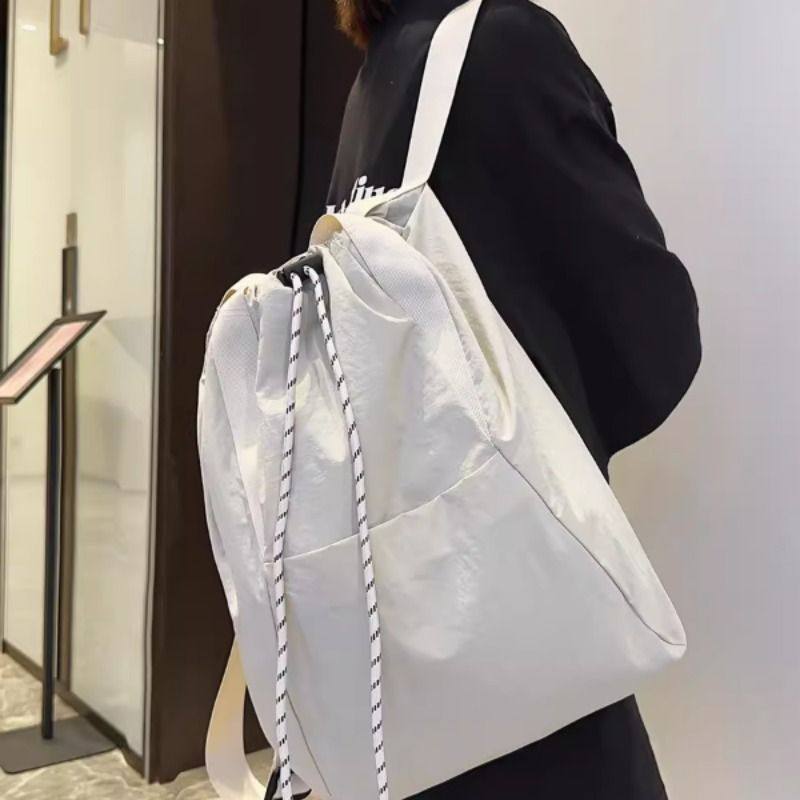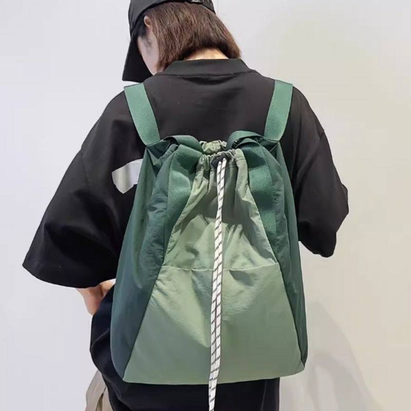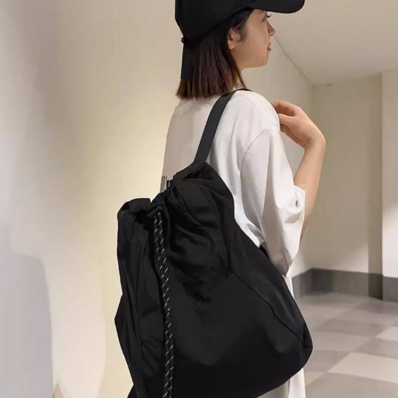 轻便抽绳多用途双肩包2025春夏新款大容量运动包单肩松弛感水桶包