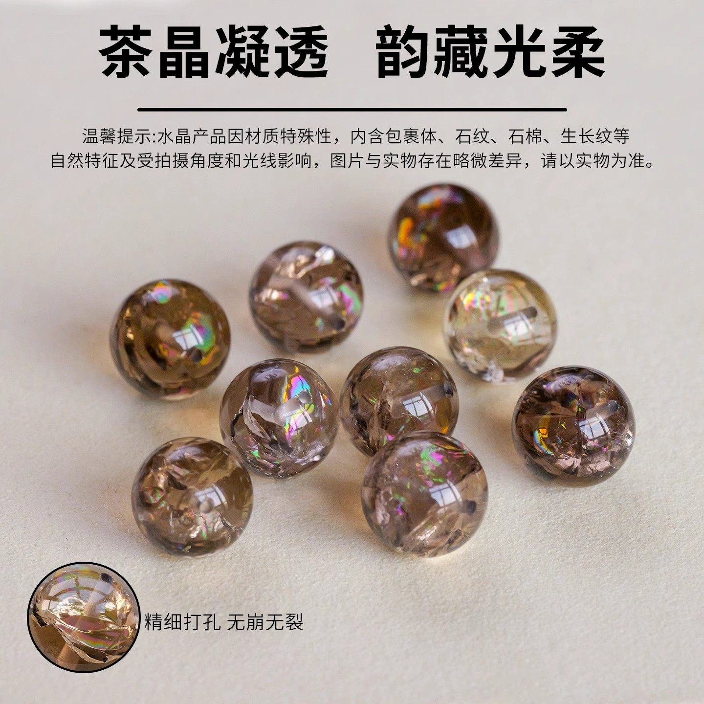 天然爆彩茶水晶散珠浅深茶色DIY配件东海水晶玛瑙手链串散珠单珠