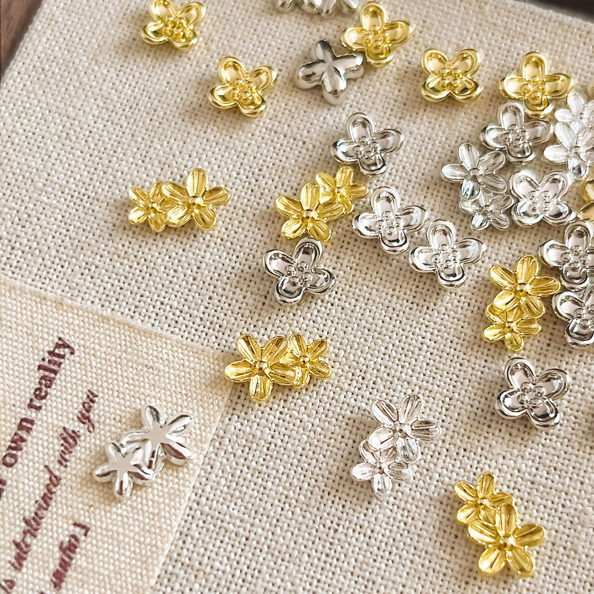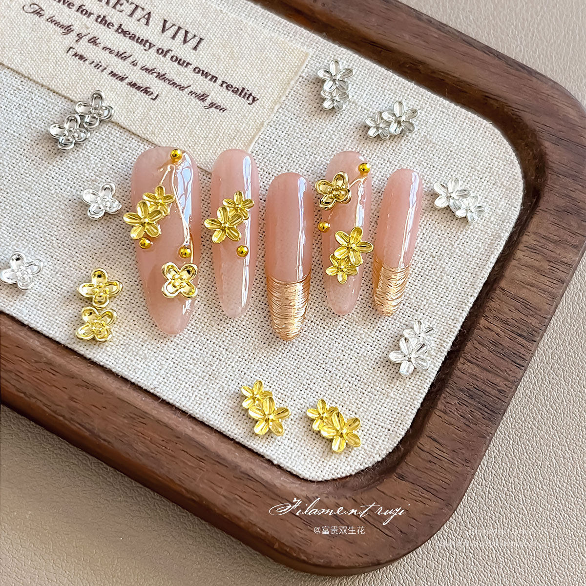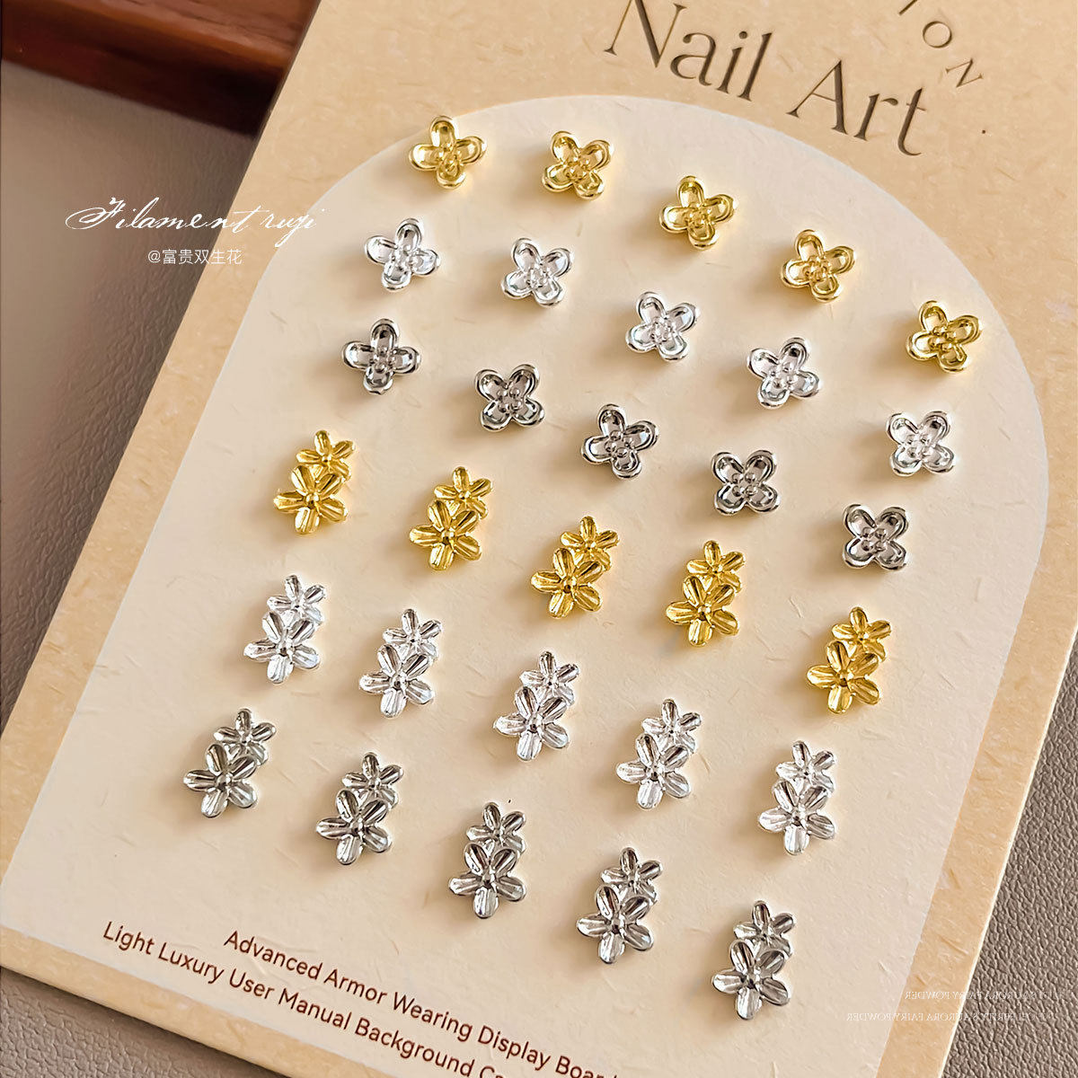 富贵繁花美甲饰品精致轻奢立体双生花朵合金指甲钻穿戴甲配饰