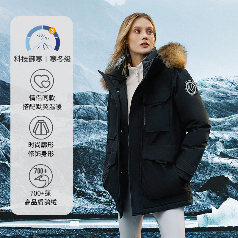 【李佳琦直播间】雪中飞2025鹅绒男女貉子毛领复古工装派克羽绒服