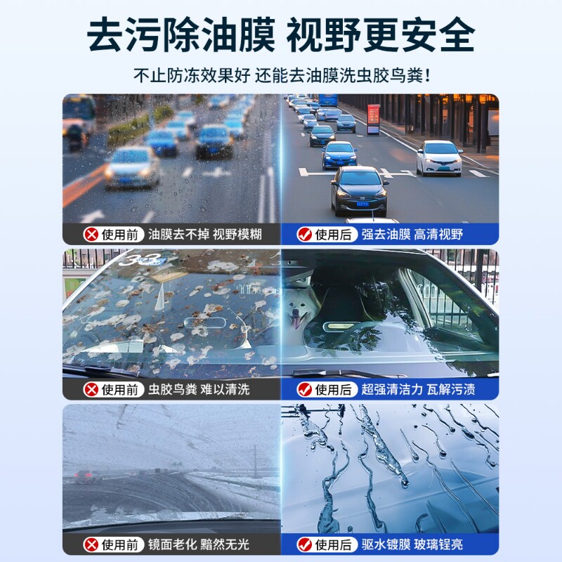 去油膜虫胶玻璃水汽车夏季防雨强力去污清洁养护冬季防冻四季通用