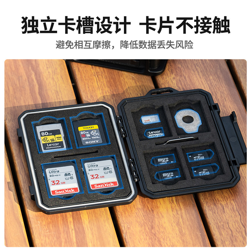 JJC 内存卡收纳盒防水储存卡包SD/TF/XQD/CF卡套存储卡记忆卡大容量保护盒防潮防尘相机配件闪存卡便携硬壳
