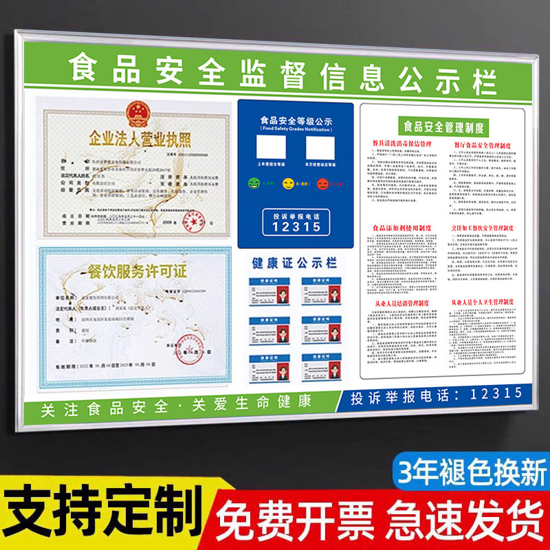 食品安全信息公示栏管理制度展示板公告栏学校食堂卫生餐饮健康许可证服务经营卡槽展示板健康证框架营业定制