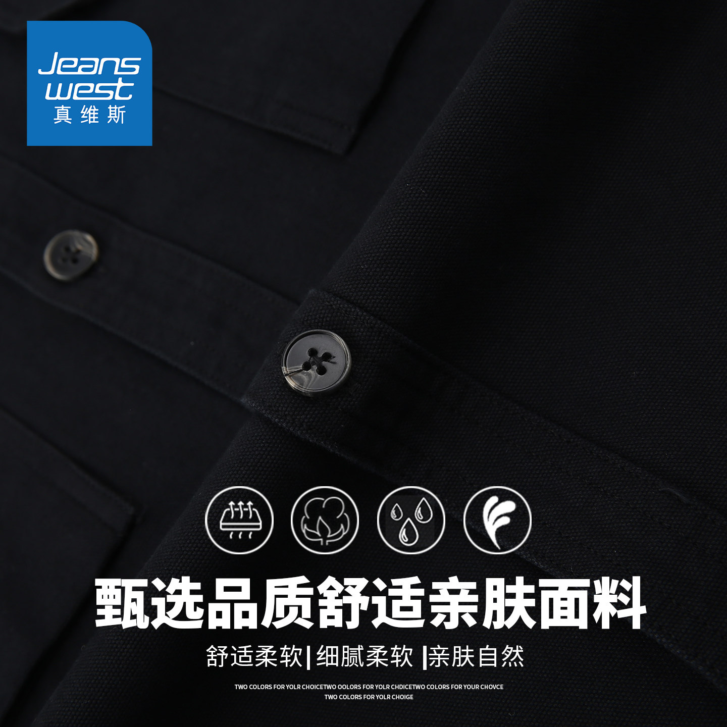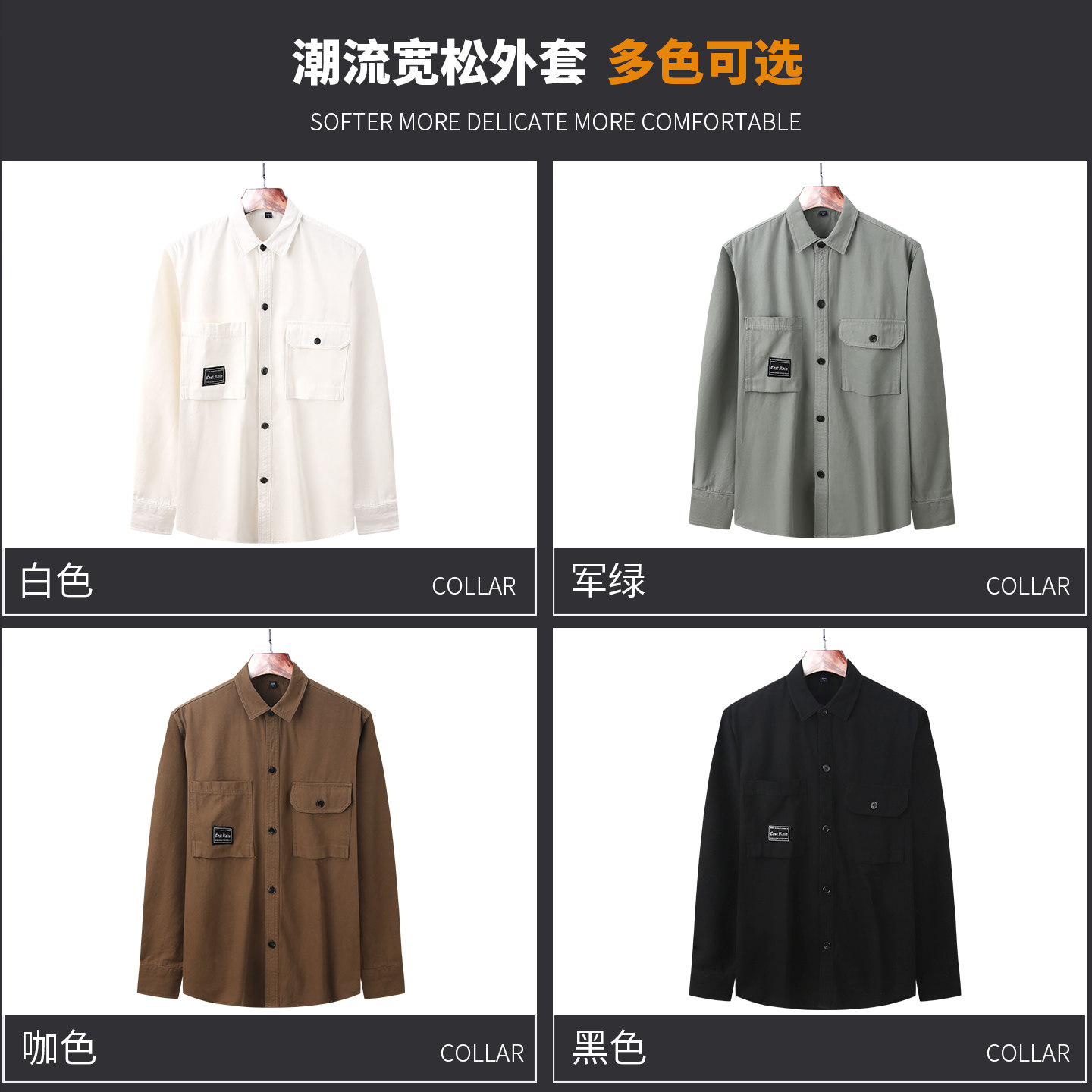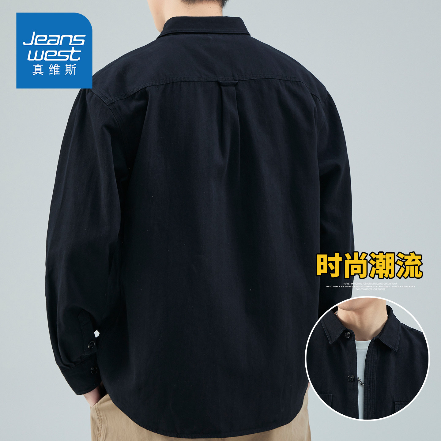KZH真维斯长袖衬衫男秋冬新款港风宽松百搭外套潮流翻领工装上衣