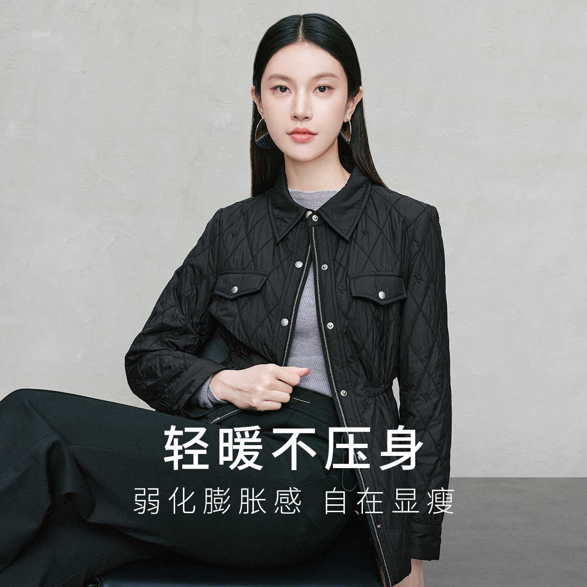 FINITY菲妮迪棉衣棉服2025年冬季新款简约抽绳显瘦菱格保暖外套女
