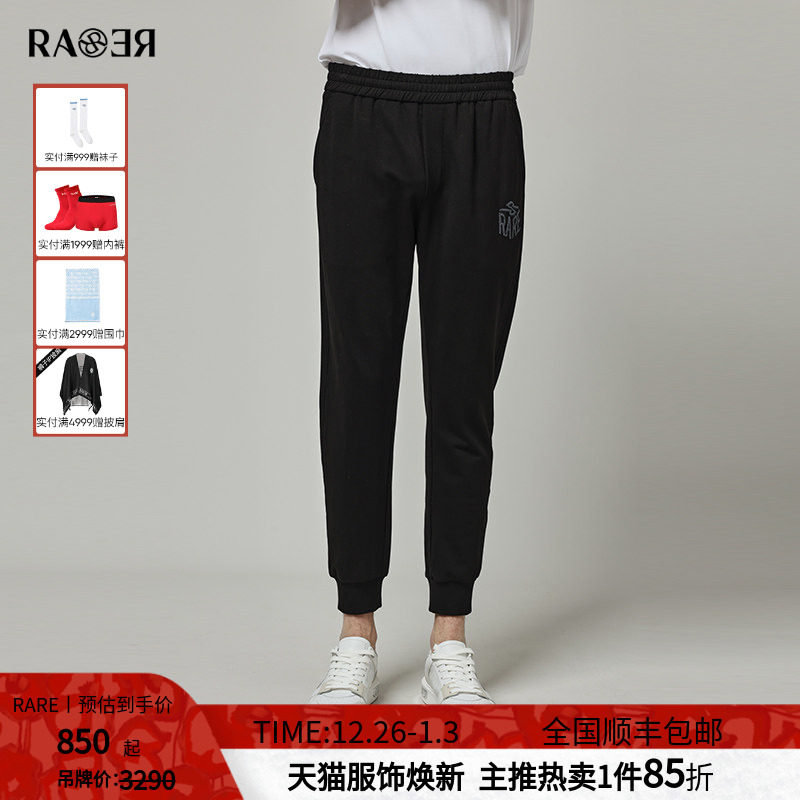 RARE威雅男裤 春夏新款黑色轻薄款卫裤立体LOGO幻彩钉珠运动裤